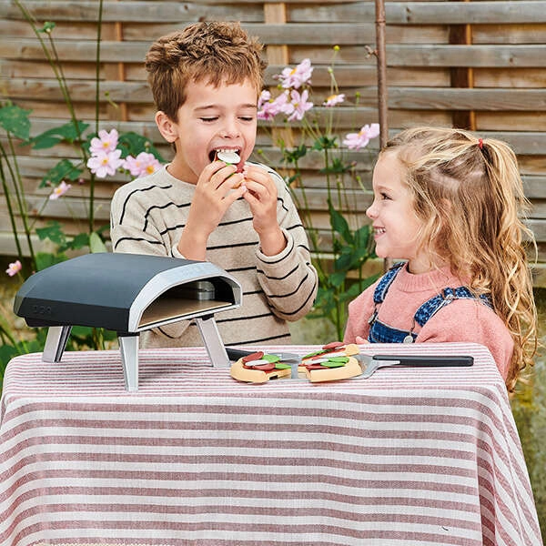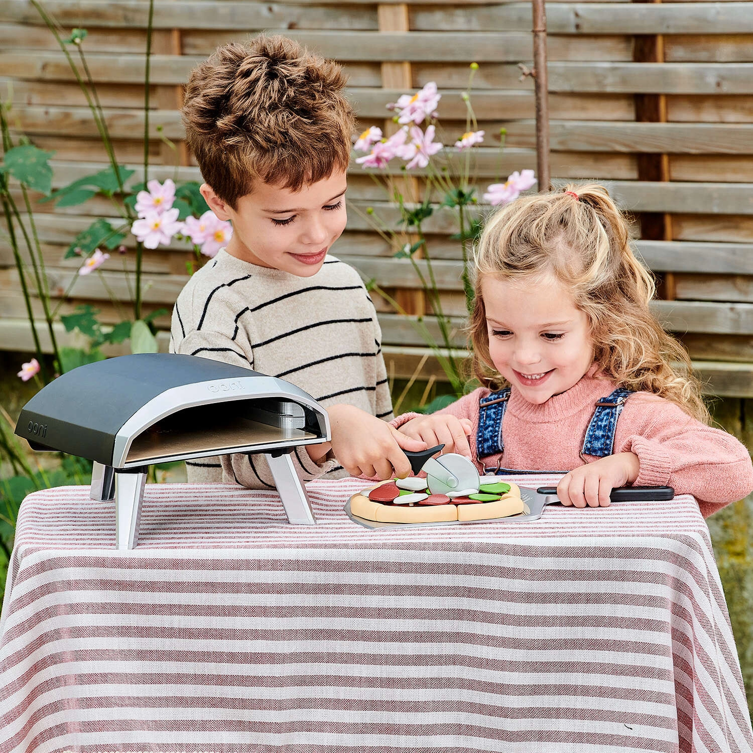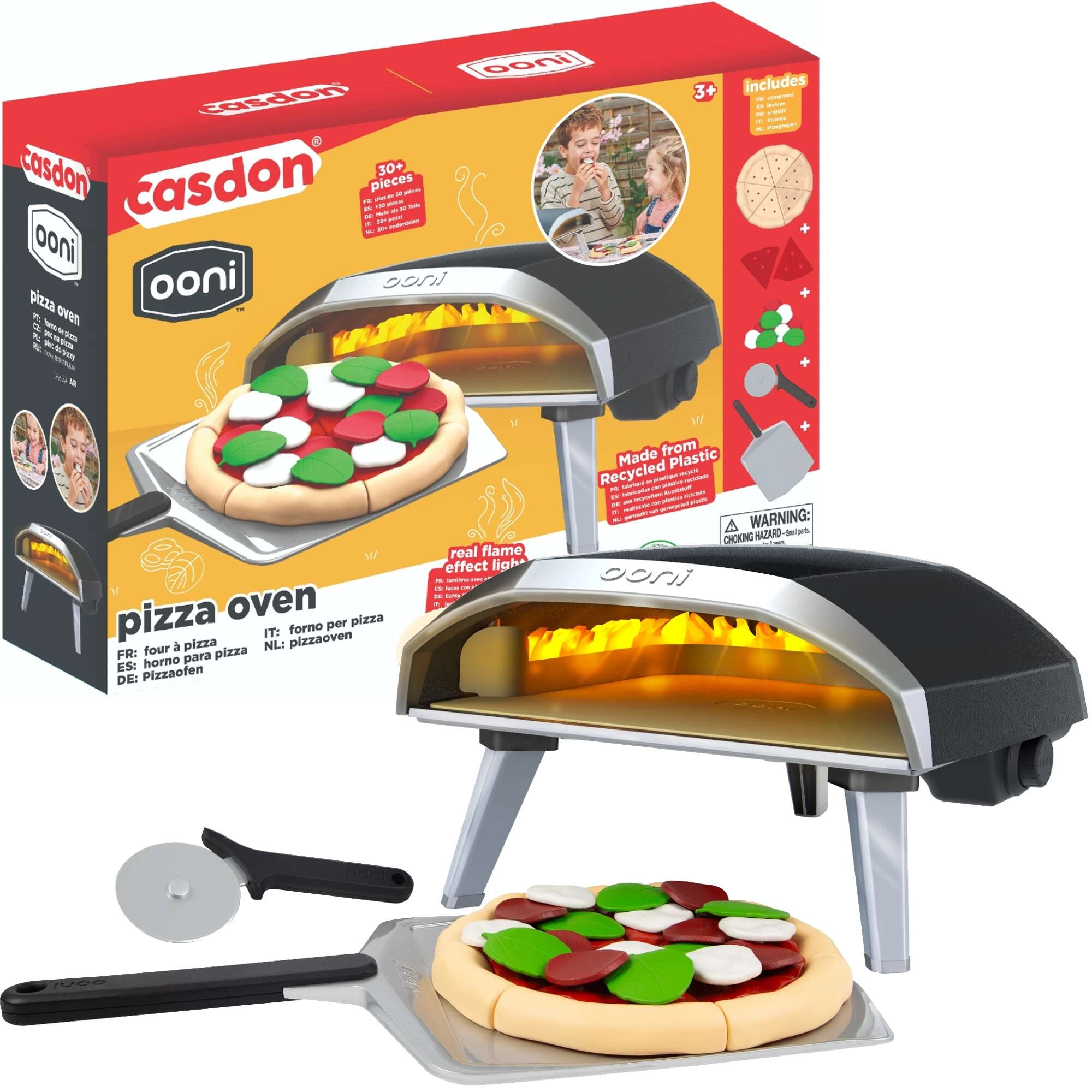Die breite Öffnung, stabile Metallfüße und der authentische „Ofen“ mit leichtem Einschieben der Pizza auf der Schaufel machen das Spiel zu einem echten Kocherlebnis.