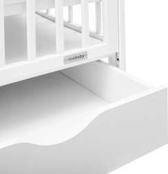 Die Konstruktion aus 100% Kiefernholz mit wasserbasiertem Lack ist schonend für Kinder und Umwelt. Die integrierte Schublade auf Kugelführungen berührt den Boden nicht, lässt sich vollständig herausziehen und wieder einschieben – ideal zur Aufbewahrung von Bettwäsche, Windeln und weiterem Zubehör.