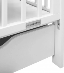 Das Babybett New Baby Lilly vereint modernes Design, langlebige Materialien und durchdachte Funktionen für den Komfort von Eltern und Baby. Die absenkbare Seite mit neuem, sicherem System ermöglicht eine komfortable Einhandbedienung. Der belüftete Lattenrost in drei Höhen unterstützt die richtige Luftzirkulation rund um die Matratze und trägt zu einer hygienischen Schlafumgebung bei.