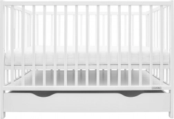 Die integrierte Schublade auf Kugelführungen bietet praktischen Stauraum, ohne den Boden zu berühren. Drei herausnehmbare Sprossen ermöglichen älteren Kindern einen sicheren Durchgang und Eltern eine bequeme Handhabung. Das Bett entspricht der Norm EN 716 für maximale Sicherheit.