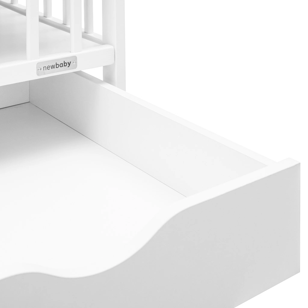 Die eingebaute Schublade bietet reichlich Platz zur Aufbewahrung von Bettwäsche und Babybedarf. Sie lässt sich sanft herausziehen und berührt nicht den Boden.
