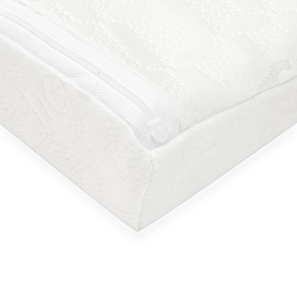 Der abnehmbare Bezug aus 100 % Polyester ist weich, atmungsaktiv und antiallergisch. Die Füllung aus hochwertigem Polyurethanschaum bietet stabile Unterstützung und bleibt dabei angenehm weich. Die Maße 59 × 37 cm mit einer Höhe von ca. 7 cm am höchsten Punkt passen in die meisten Kinderbetten.