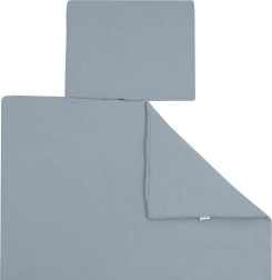 Das Set umfasst eine Decke 70 × 80 cm und ein Kissen 28 × 34 cm mit weicher, antiallergischer Füllung. Alle verwendeten Materialien sind geprüft und erfüllen den OEKO-TEX STANDARD 100 für die Sicherheit der Babyhaut.