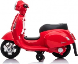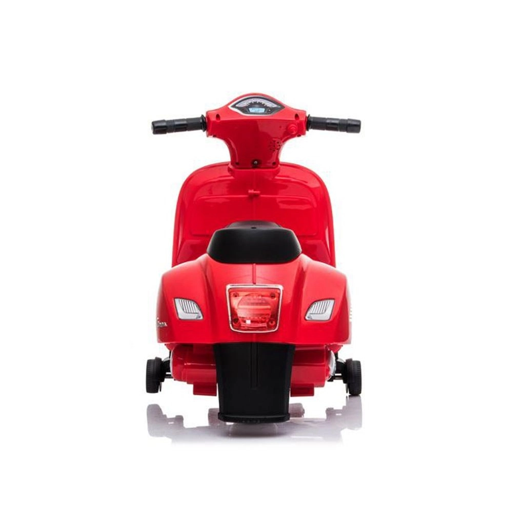 Das elektrische Kinder-Motorrad VESPA in Weiß bringt ikonisches Design und einen sicheren Start in die Welt des Fahrens. Stützräder helfen beim Erlernen des Gleichgewichts, während der Sitz aus ECO-Leder auch bei längeren Fahrten Komfort garantiert. Front-LED-Lichter erhöhen die Sichtbarkeit und sorgen für einen authentischen Look.