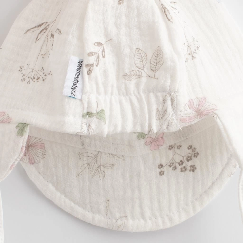 Die leichte und atmungsaktive sommerliche Musselin-Mütze mit Schirm New Baby Zoe schützt den Kinderkopf und die Augen vor der Sonne. Dank der Bindebänder sitzt sie hervorragend, ist bequem und drückt nicht. Aus feinem Musselin aus 100% Baumwolle – einem Material, das für seine Atmungsaktivität, Zartheit und Beständigkeit gegenüber häufigem Waschen bekannt ist.