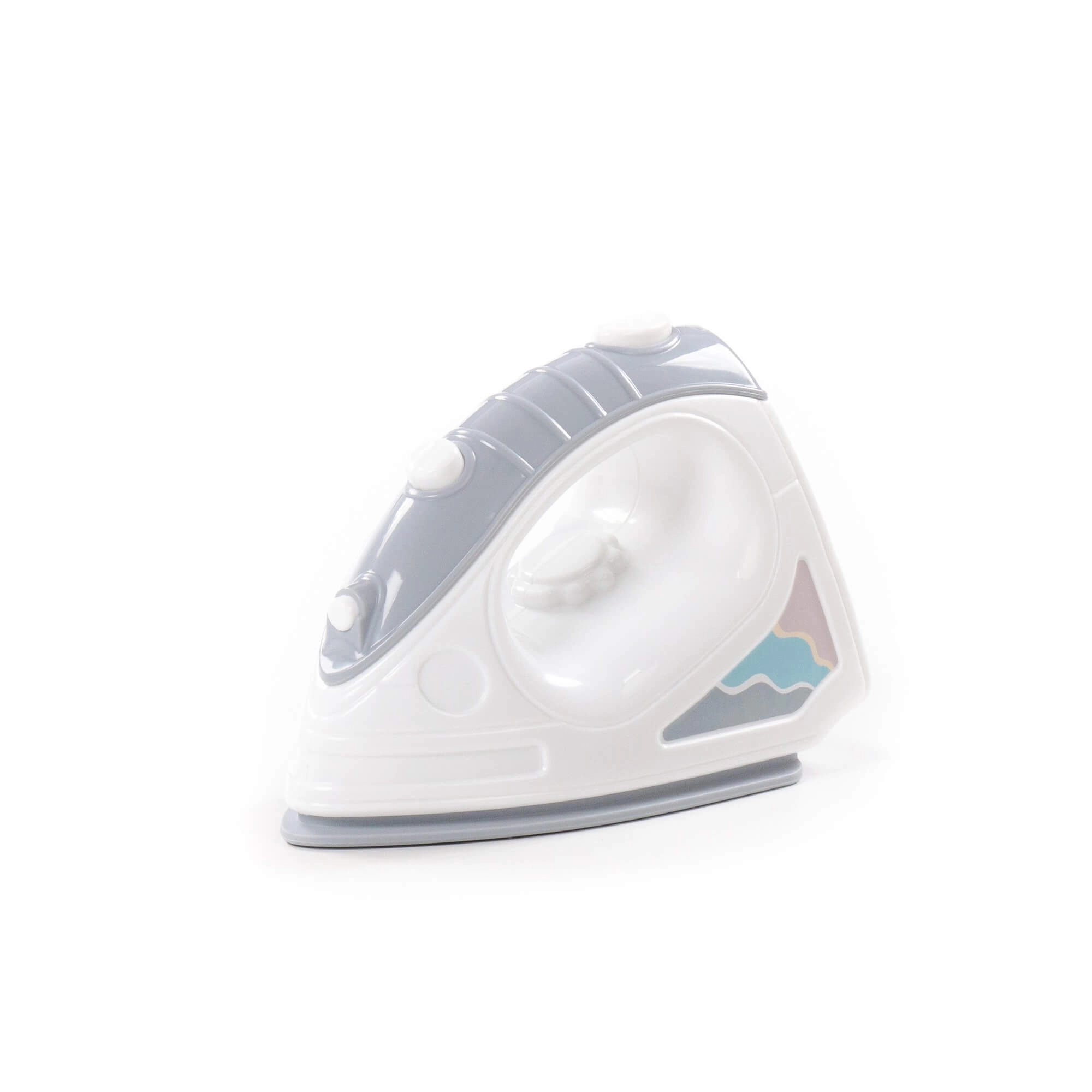 Das Bügeleisen ist in mehreren Pastellfarben erhältlich, mit einer detaillierten Bügelsohle und Tasten, die ein echtes Gerät nachahmen. Es ergänzt hervorragend die Spielecke mit Haushaltsspielzeug und unterstützt gemeinsames Spielen mit Freunden und Eltern.