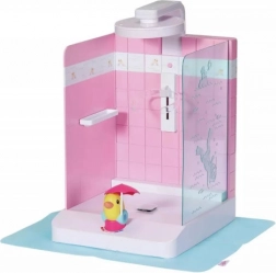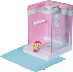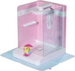 Die BABY born Duschkabine für Puppen verwandelt jedes Badezimmer in einen spaßigen Wasserspielplatz. Einfach das Entchen Berta drehen und die elektrische Pumpe startet, die einen Strahl echten Wassers aus dem Duschkopf liefert. Der imaginäre Mischhebel in Entchenform zeigt die Temperatur an (ohne echte Erwärmung), so wird das Rollenspiel rund ums Baden besonders realistisch.