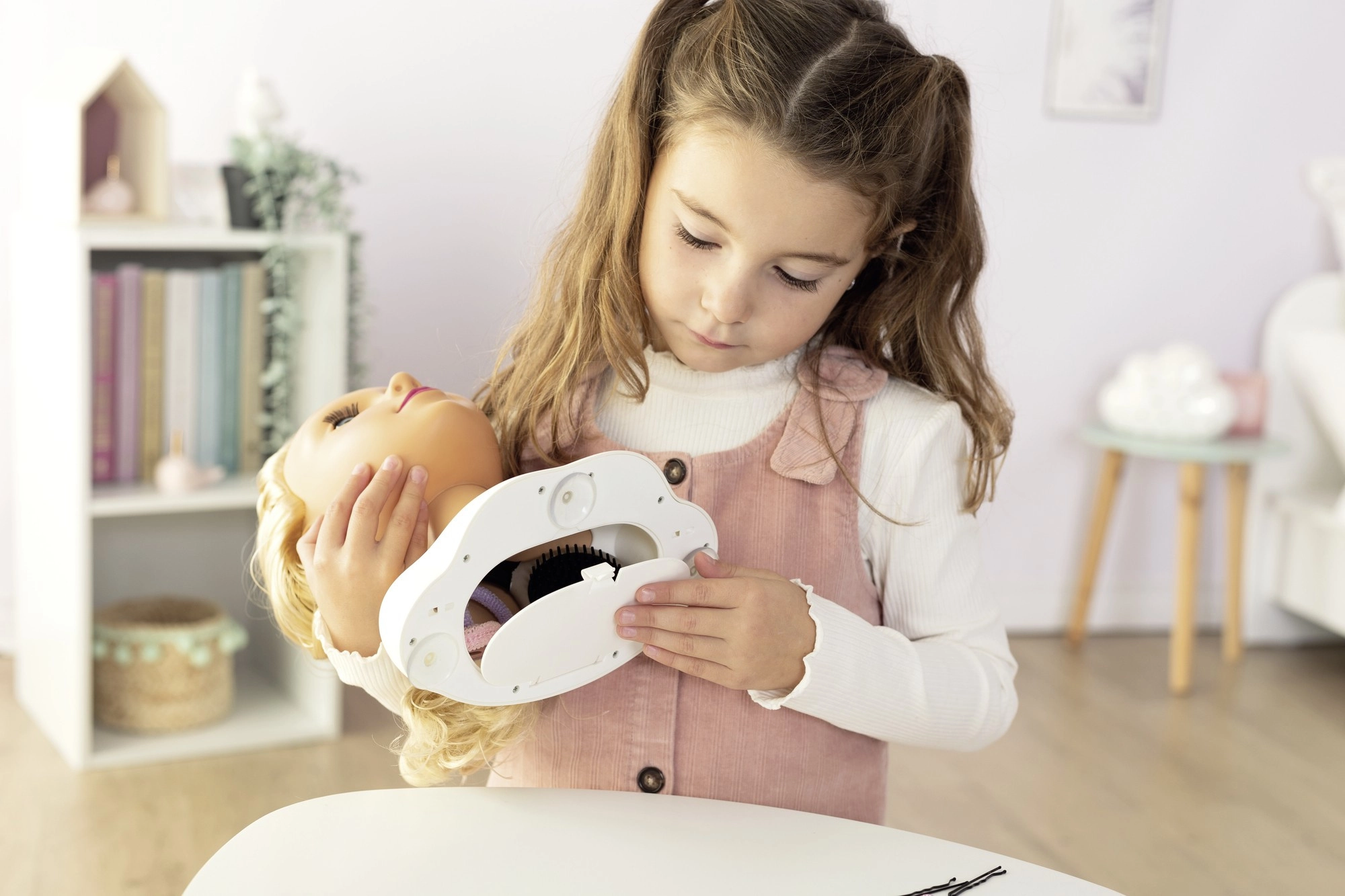 Eine feste Basis oder Klemme am Tisch sorgt beim Kämmen für Stabilität, damit sich Kinder voll auf das Styling konzentrieren können.