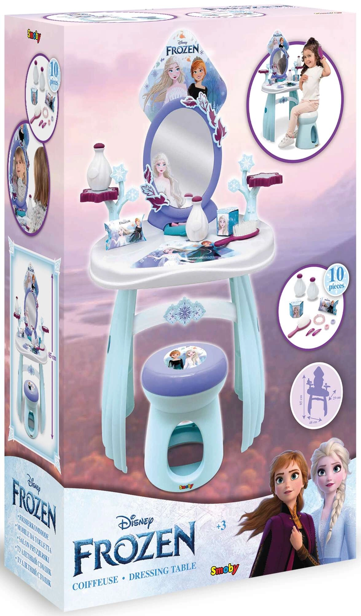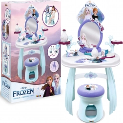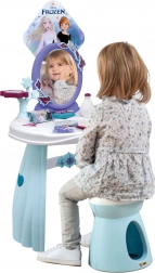 Der vom FROZEN-Universum inspirierte Schminktisch begeistert alle kleinen Prinzessinnen. Die stabile Kunststoffkonstruktion, glatte Kanten und der sichere Spiegel unterstützen ein sicheres Spiel, während der praktische Hocker bequemes Sitzen beim Kämmen und Schmücken ermöglicht. Auf der Tischplatte befinden sich Ablageflächen und Halterungen für Accessoires, damit alles stets griffbereit ist.