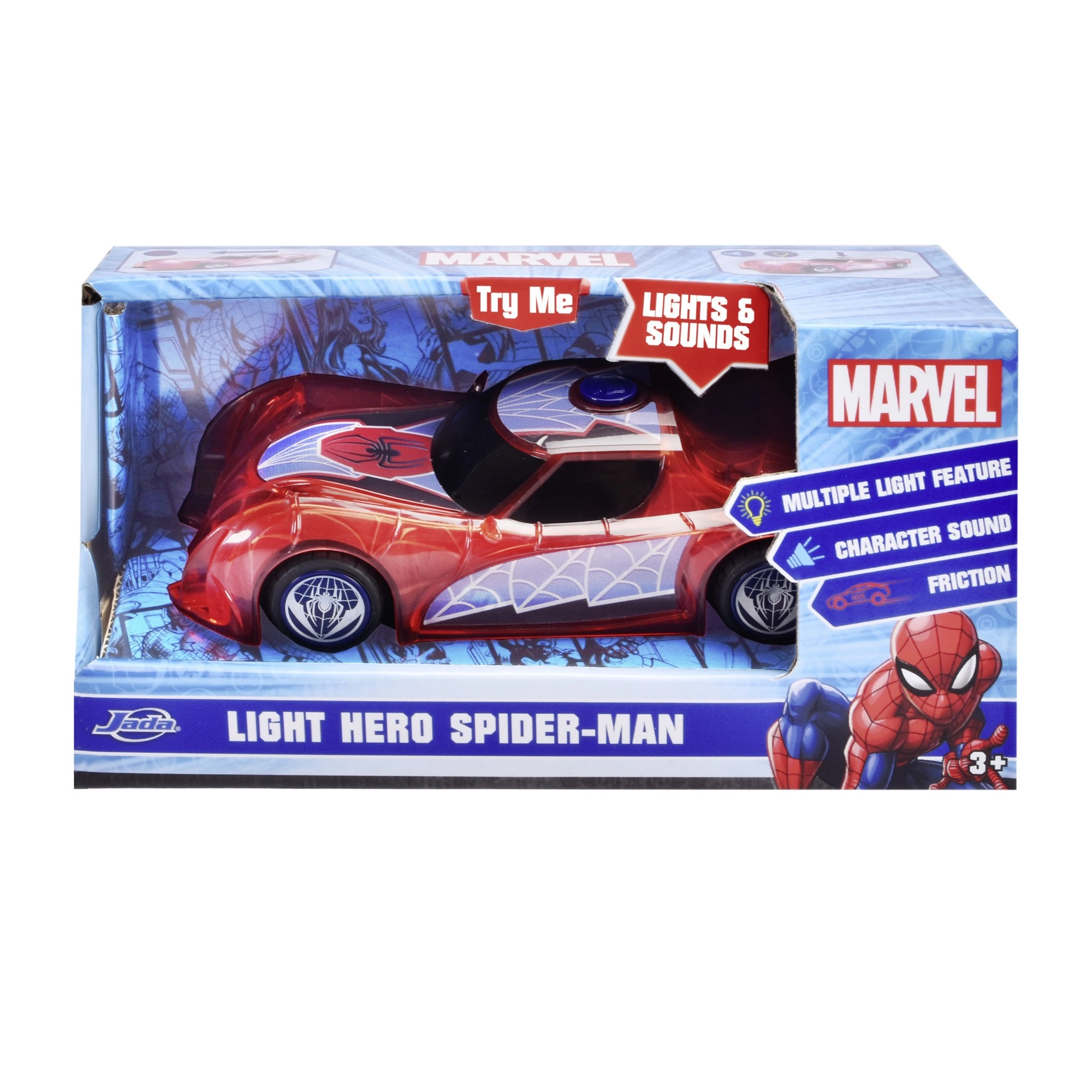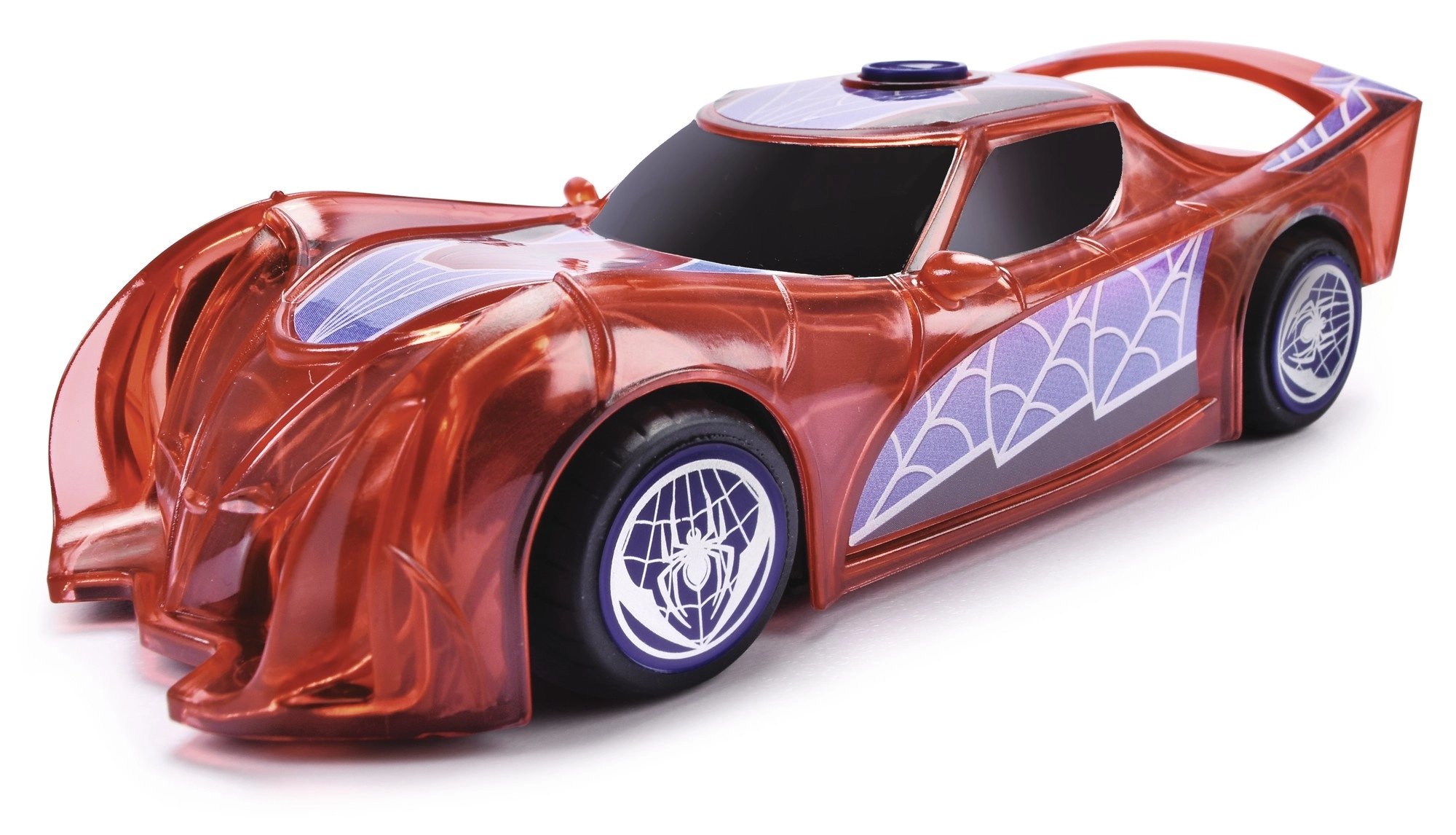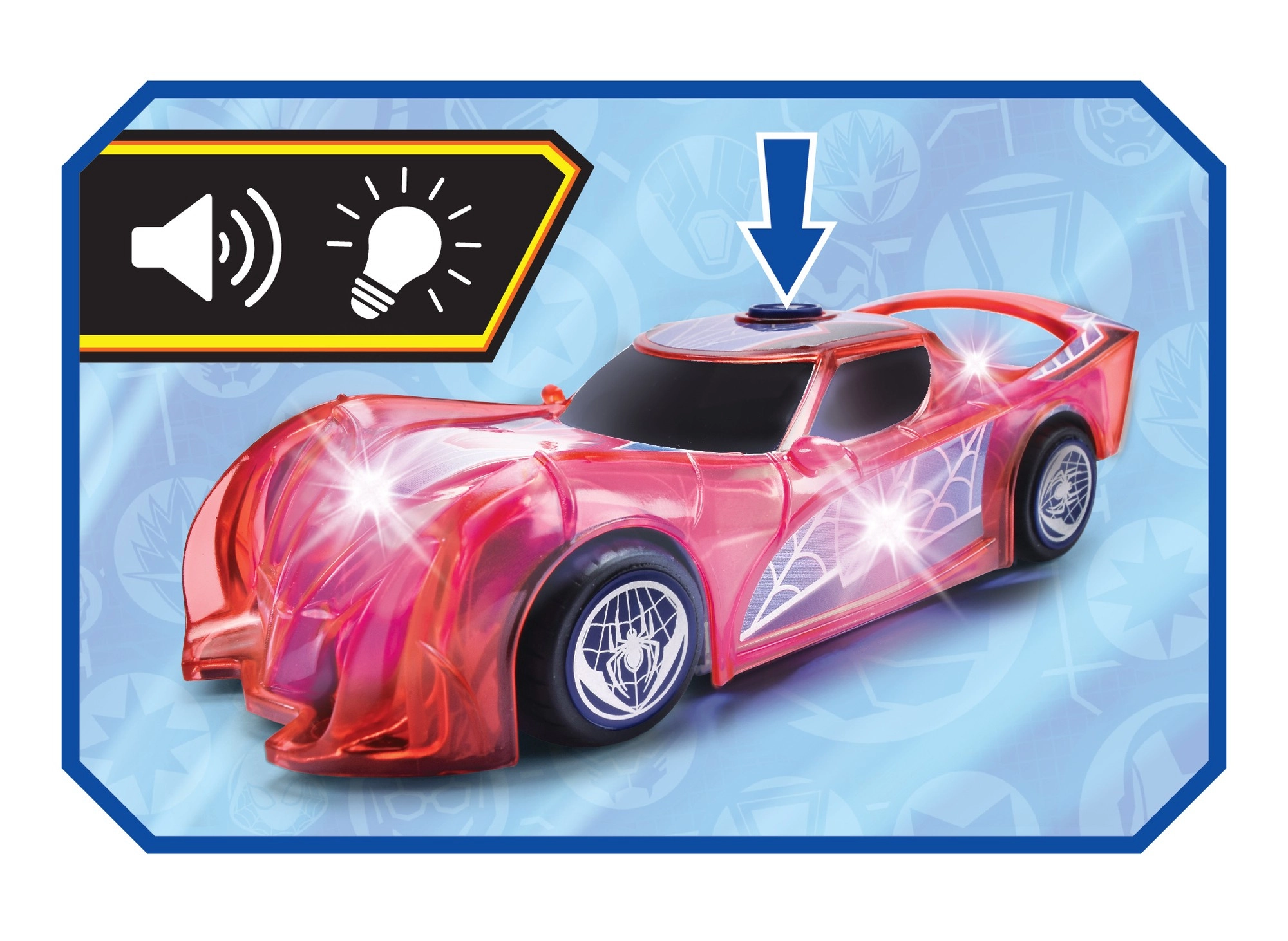 Karosserie mit Spinnennetzen, sportliche Formen und Spoiler. Ideal zum Nachspielen von Szenen aus der MARVEL-Welt und zum Sammeln und Ausstellen.