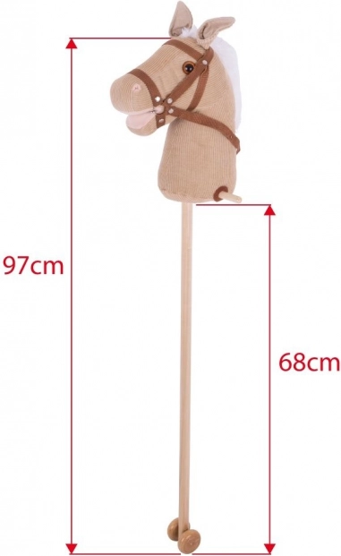 Das Kord-Steckenpferd ist das ideale Spielzeug für Kinder, die Bewegung lieben. Dieses Pferd verfügt über einen weichen Kopf aus Kordstoff, eine flauschige Mähne und praktische Zügel. Zwei Holzräder am Ende der Stange ermöglichen eine sanfte Fortbewegung auf ebenen Flächen, ohne Spuren zu hinterlassen.