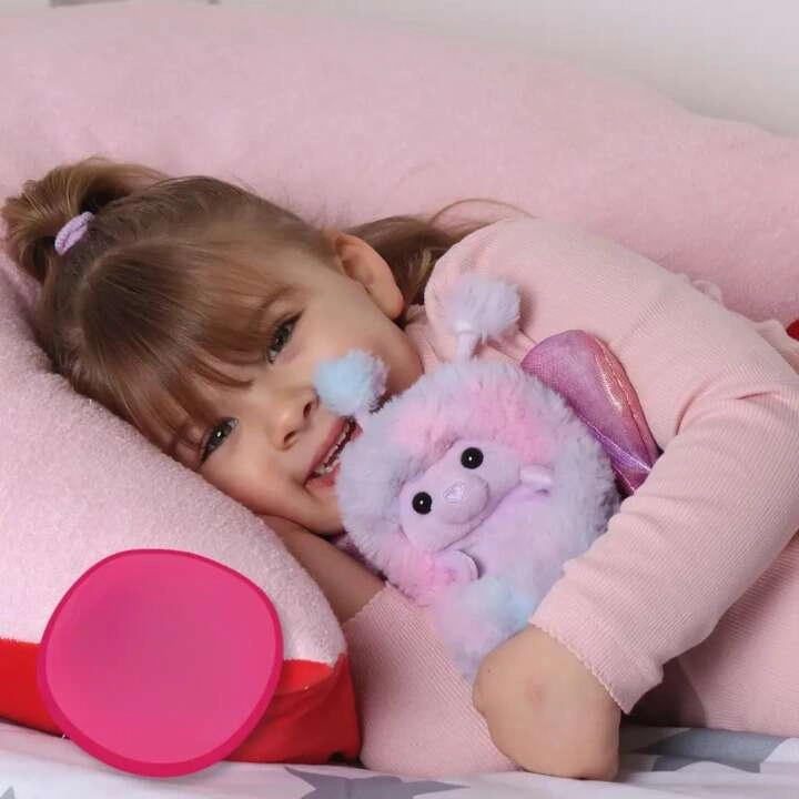 Entdecken Sie die magische Welt der CURLIMALS mit Teddybär Bella, der die Herzen aller Kinder erobert. Er hat superweiches, flauschiges Fell, ein aufgesticktes Gesicht und Kunststoffäuglein. Auf dem Rücken finden Sie zwei rosafarbene Flügelchen, die sich zusammen mit dem Spielzeug bewegen und zugleich im Dunkeln leuchten – der perfekte Begleiter fürs Kinderzimmer und unterwegs.