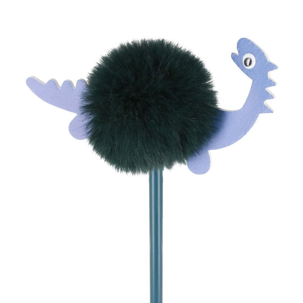 Die Kombination aus einem liebenswerten Dinosaurier und einem flauschigen Pompon fällt sofort ins Auge und macht Schreiben zum Vergnügen.