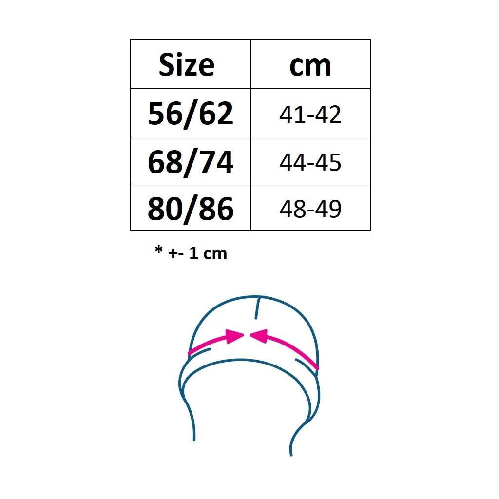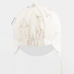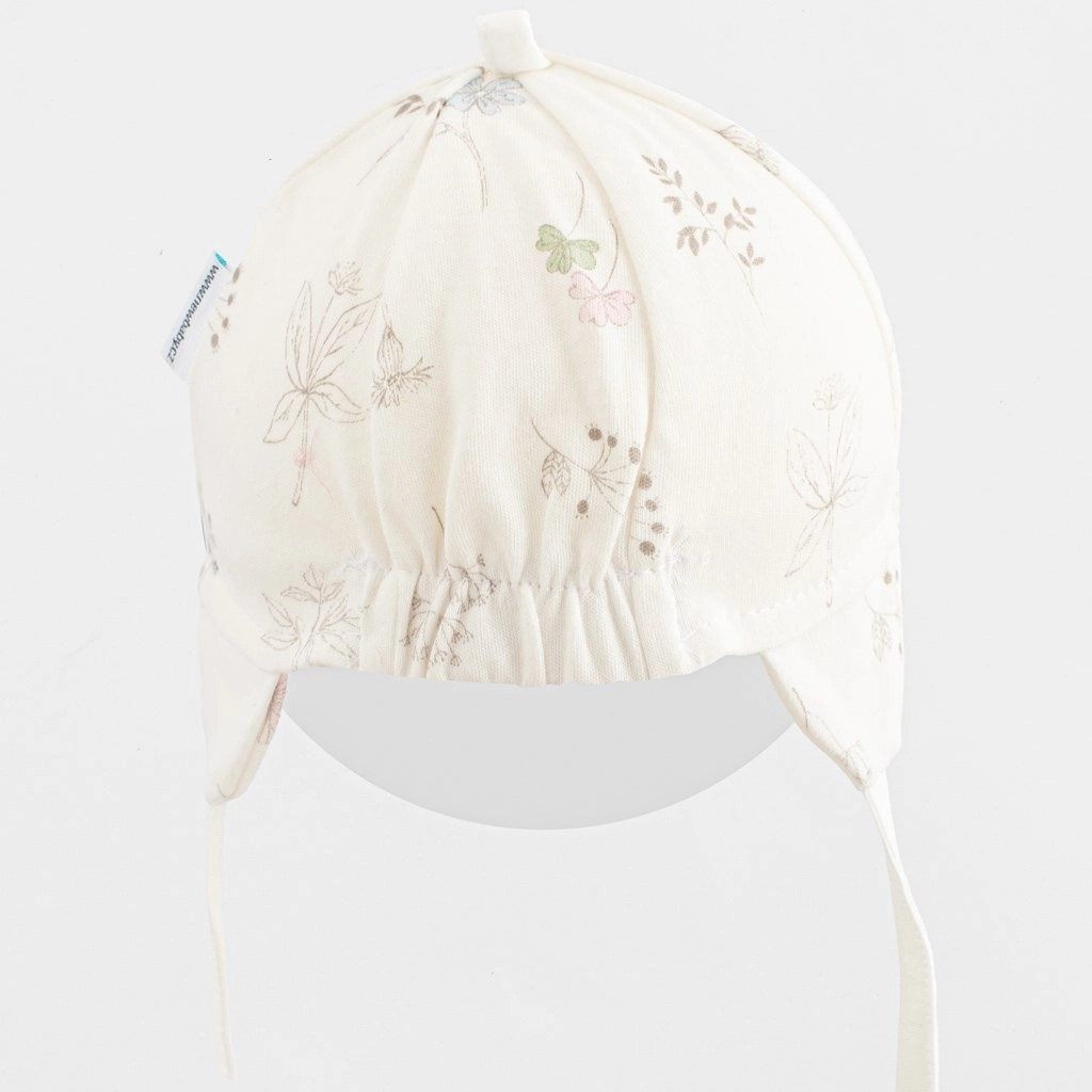 Dank des durchdachten Schnitts bedeckt die Kappe die Ohren schön, und das Binden mit Schnürbändern sorgt für sicheren Halt, selbst bei sehr aktiven Kindern. Das Material mit der Zertifizierung OEKO-TEX STANDARD 100 ist sanft zu empfindlicher Kinderhaut.