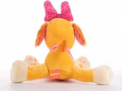 Dieses große SKYE Plüschtier in Bauchlage ist wie geschaffen zum Kuscheln und Spielen. Sie hat einen fröhlichen Ausdruck mit großen rosa Augen, eine niedliche Schleife am Kopf und trägt einen rosa Pullover mit Schneeflocken- und Tannenmotiven. Dank gestickter Augen und Nase ist sie auch für jüngere Kinder sicher.