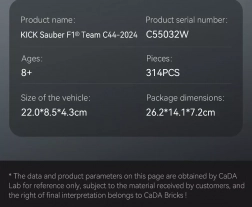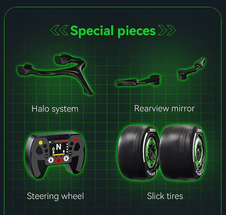 Die Baureihe Master richtet sich an Fans schneller Monoposti und durchdachten Bauens. Das Modell fängt den Charakter des realen Boliden des Sauber-Teams (C44 – 2024) getreu ein und wirkt dank der Drucke auch nach langer Nutzung authentisch. Ideal zur Förderung von Geduld, Vorstellungskraft und Feinmotorik.