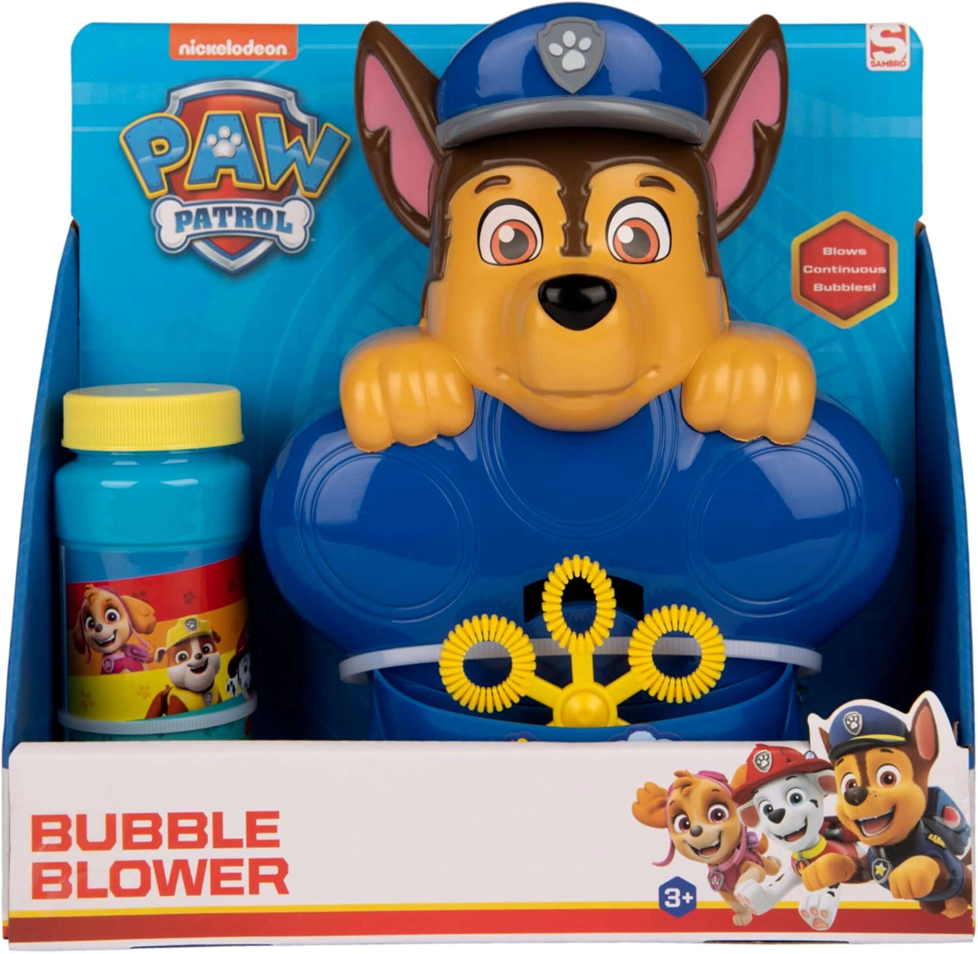 Die Figur von Chase begeistert Kinder. Das thematische Design fördert kreatives Spielen und macht die Seifenblasenmaschine zum tollen Geschenk für Fans.