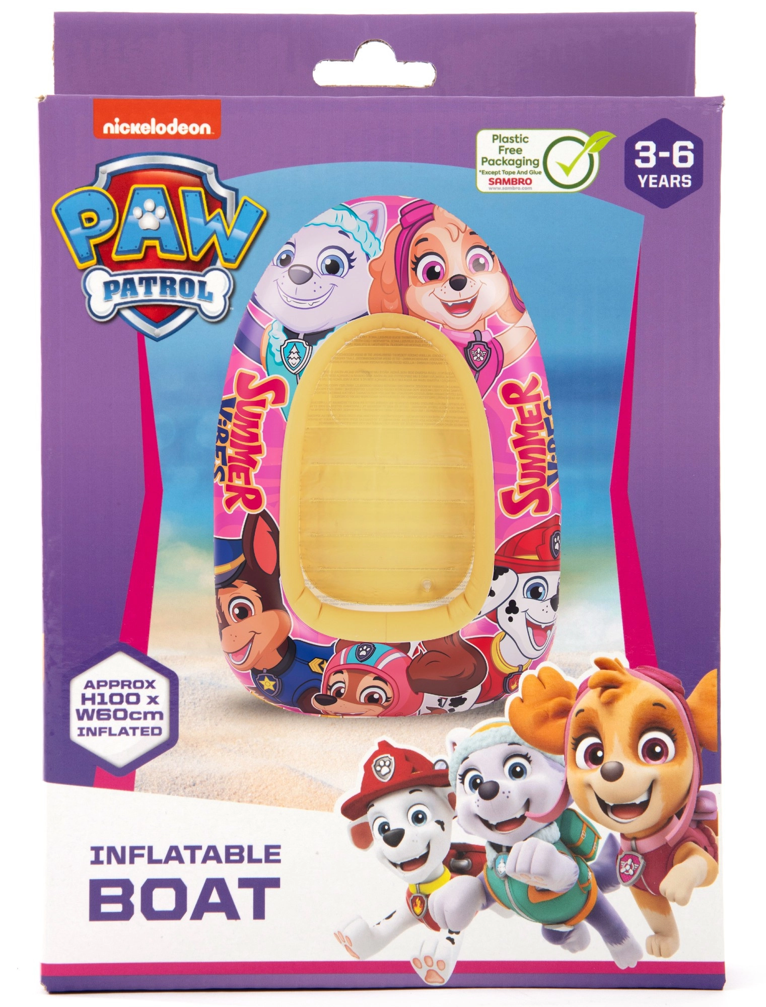 Das aufblasbare Boot mit den beliebten Helden aus PAW PATROL begeistert kleine Wasserratten. Dank des farbenfrohen Designs mit den Figuren Skye und Everest sticht das Boot auf dem Wasser schön hervor und motiviert Kinder zu aktiver Bewegung. Leicht, einfach zu transportieren und in wenigen Augenblicken einsatzbereit.