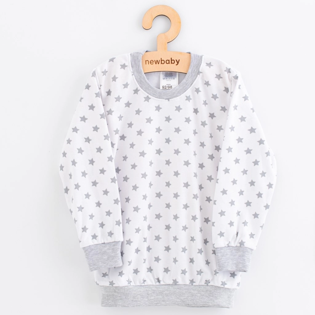 Suchen Sie ein Pyjama, in dem sich Ihr Kind die ganze Nacht über wohlfühlt? Das Kinder-Baumwollpyjama NEW BABY mit Sternchen ist aus reiner 100 % Baumwolle gefertigt, die weich, atmungsaktiv und sanft zur Haut ist. Das verschlusslose Shirt mit weichem Halsausschnitt lässt sich leicht über den Kopf ziehen, die Hose hat einen bequemen Bund mit weichem Gummizug sowie angenehme Beinabschlüsse, die nicht drücken.