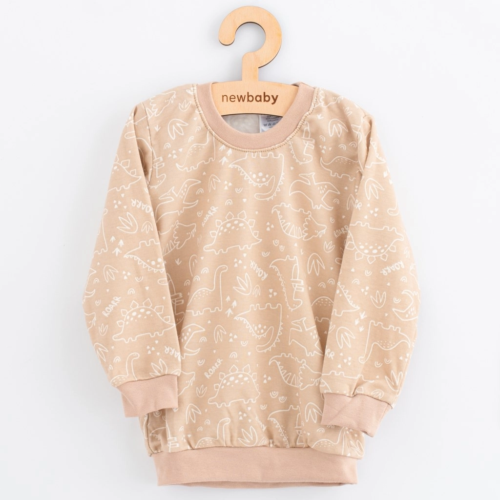 Suchen Sie einen Pyjama, den Kinder gern tragen und den Eltern wegen der einfachen Pflege schätzen? Der Kinder-Baumwollpyjama NEW BABY in Beige mit Dinosaurier-Motiv ist die ideale Wahl. Das Shirt ohne Knopfverschluss lässt sich dank des weichen Halsausschnitts leicht über den Kopf anziehen und drückt nirgends. Die Hose hat einen bequemen elastischen Bund und weiche Bündchen am Beinabschluss, sodass alles auch bei unruhigem Schlaf gut sitzt.
