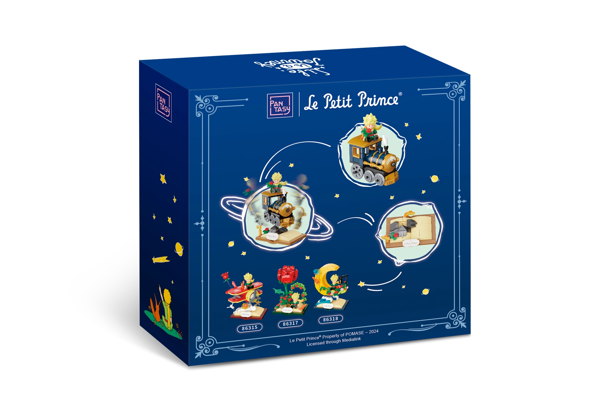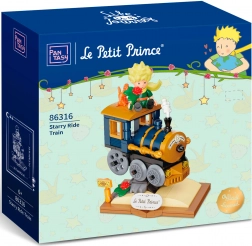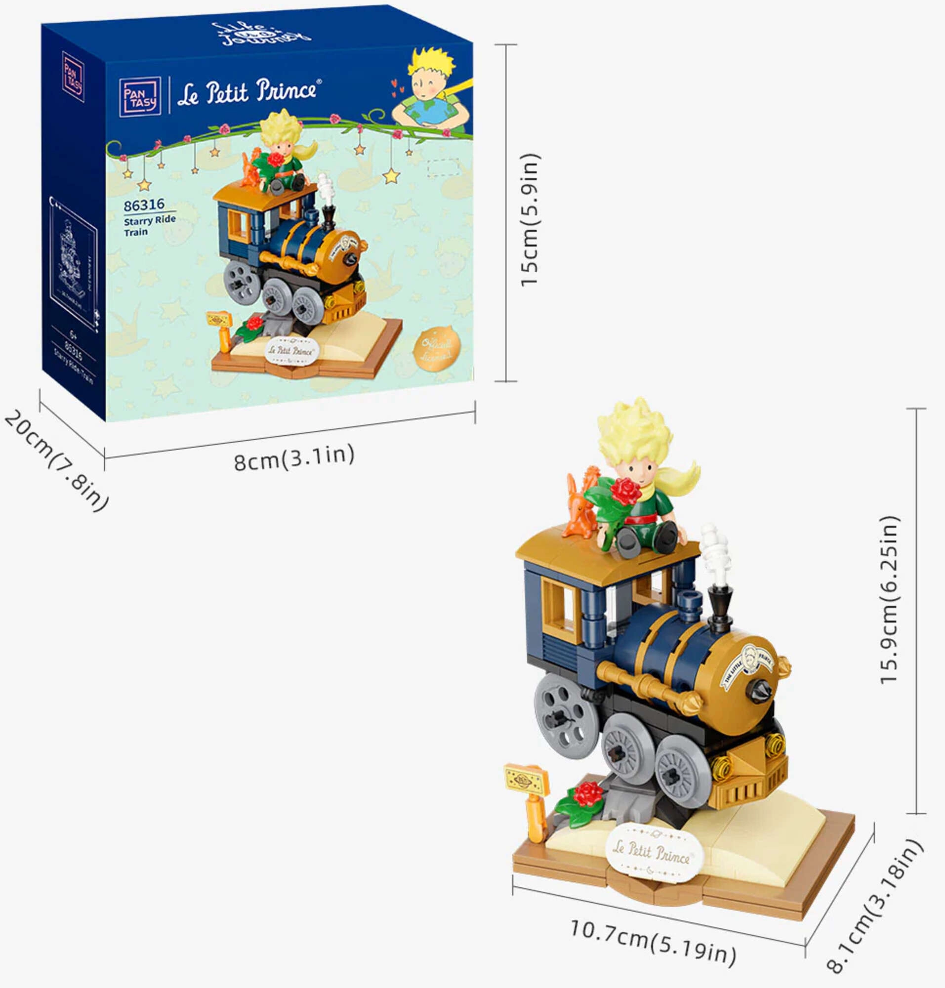 Dieser Bausatz aus der Pantasy – Starry Ride Series entführt Sie in die poetische Welt des kleinen Prinzen. Der elegante Zug in Gold-, Marineblau- und Schwarztönen steht auf einem Sockel, der einem geöffneten Buch mit der Aufschrift „Le Petit Prince“ nachempfunden ist. Symbolische Details wie Rosen, Sterne, Wolken und die Figur des kleinen Prinzen mit dem Fuchs fehlen nicht.