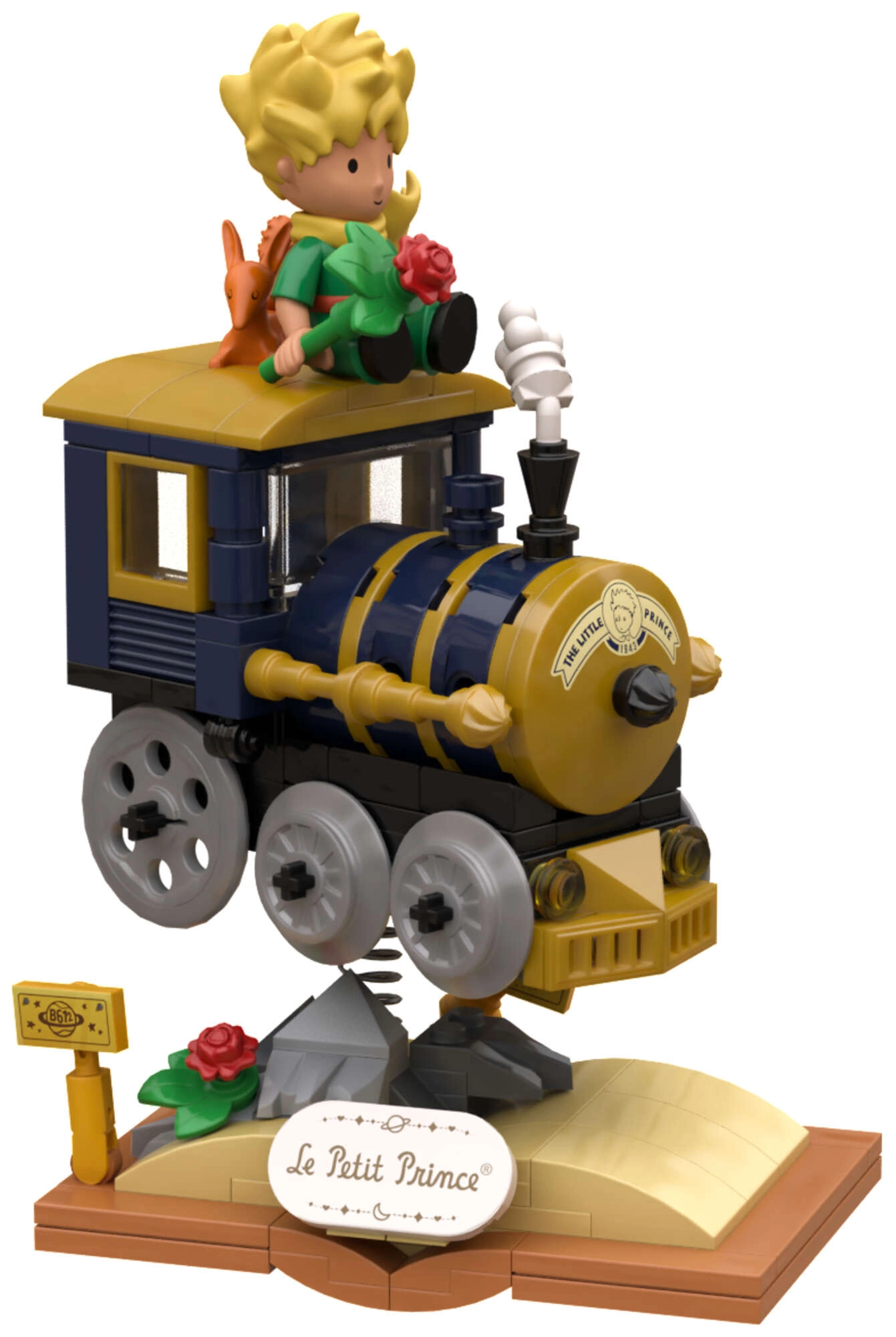 Der Bausatz stellt einen poetischen Zug mit der Aufschrift „Le Petit Prince“ auf einem Sockel in Form eines geöffneten Buches dar – ein wunderschönes Sammler- und Dekomodell.