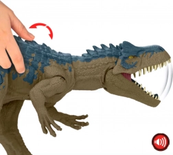 Drücken Sie die Taste am Rücken und sehen Sie zu, wie der Allosaurus angreift – die Kopfbewegung und das weit geöffnete Maul sorgen für spannendes Spiel.