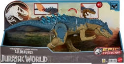 Der interaktive Allosaurus von JURASSIC WORLD bringt Spannung und einen realistischen Look ins Spiel. Die detaillierte Hauttextur, markante Zähne und Augen, die dynamische Silhouette und die präzisen Proportionen vermitteln den Eindruck eines echten prähistorischen Predators. Dank beweglicher Gliedmaßen, Hals, Schwanz und Kiefer lässt sich die Figur leicht in actionreiche Posen bringen.