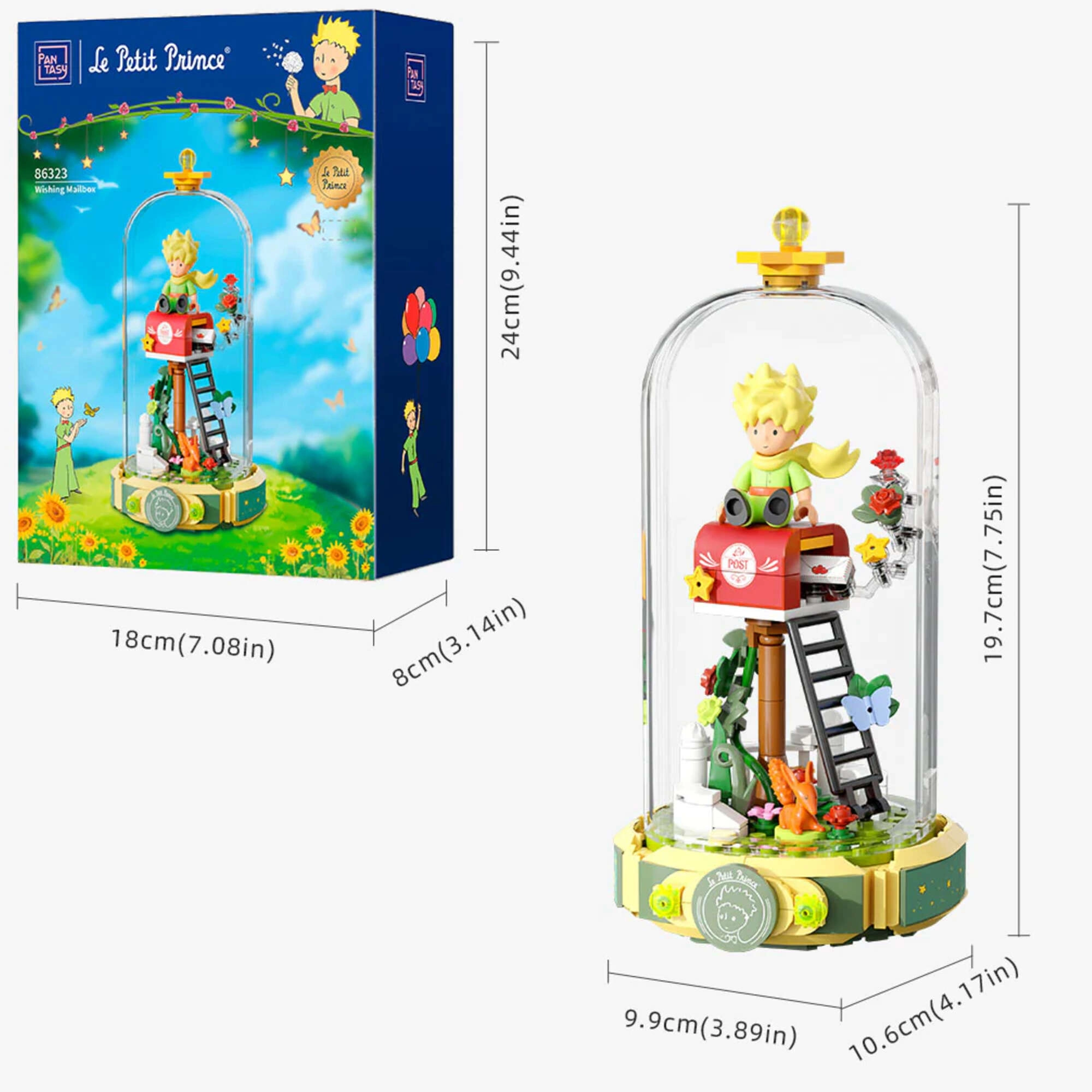 Tauchen Sie ein in die poetische Welt des Buches Der kleine Prinz mit einem Design-Bauset, das literarische Tradition mit modernem Look verbindet. Das Modell „Wunschbriefkasten“ präsentiert eine bezaubernde Szene mit einem Briefkasten, umgeben von Rosen, sowie den Figuren des Kleinen Prinzen und des Fuchses auf einem eleganten Sockel in Form eines offenen Buches. Dank der präzisen Passform der Teile und gedruckter Dekore ohne Aufkleber kommt jedes Detail zur Geltung und das Modell behält jahrelang sein schönes Aussehen.