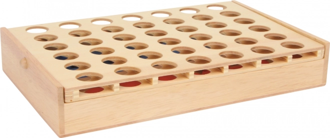 Dieses Holzspiel ist dank seines kompakten Designs ideal für Reisen. Die Spieler lassen abwechselnd rote und blaue Scheiben in die vertikalen Spalten fallen, mit dem Ziel, eine Reihe aus vier Scheiben derselben Farbe zu bilden. Dank der hochwertigen Holzausführung ist das Spiel nicht nur optisch ansprechend, sondern auch robust und langlebig.