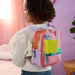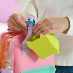 Dank des integrierten Karabiners lässt sich die Mini-Box an Rucksack oder Tasche befestigen – so kann man unterwegs überall spielen.