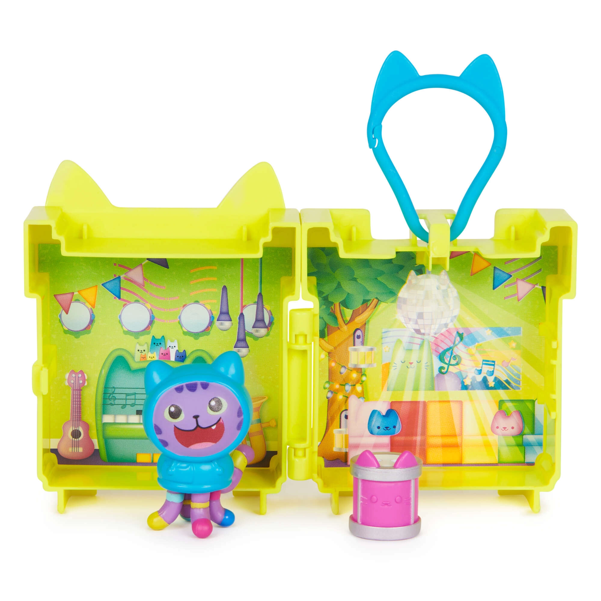 Entdecke die niedliche Mini-Box mit DJ Catnip aus der beliebten Serie Gabby’s Dollhouse. Das gelbe Katzen-Etui klappt zu einer Musikszene auf, in der Kinder ihrer Fantasie freien Lauf lassen, Geschichten erzählen und mit tollen Accessoires spielen können. Dank des praktischen Karabiners lässt sich das Set einfach an Rucksack oder Tasche befestigen und ist immer dabei.
