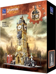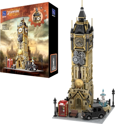 Dieses offiziell freigegebene Modell der Steampunk-Edition versetzt Baumeister in die Welt des industriellen Vintage. Warme Messing-, Braun- und dunkle Metalltöne schaffen die authentische Atmosphäre der Dampf-Ära, während der zentrale Uhrturm in einem malerischen Park zum Blickfang jeder Sammlung wird. Der Bausatz legt Wert auf mechanische Präzision und visuelles Detail und ist somit ideal zum Ausstellen wie auch für kreatives Spielen.