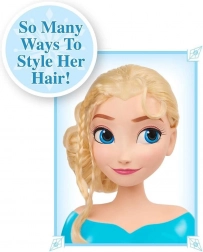 Der Elsa-Frisierkopf von Just Play zeigt die beliebte Prinzessin aus dem Film DISNEY FROZEN detailgetreu. Dank der langen, dichten und leicht entwirrbaren Haare können Kinder Zöpfe, Wellen und elegante Dutts kreieren. Die stabile Kunststoffbasis hält den Kopf fest auf dem Tisch – so wird das Frisieren bequem und macht Spaß.