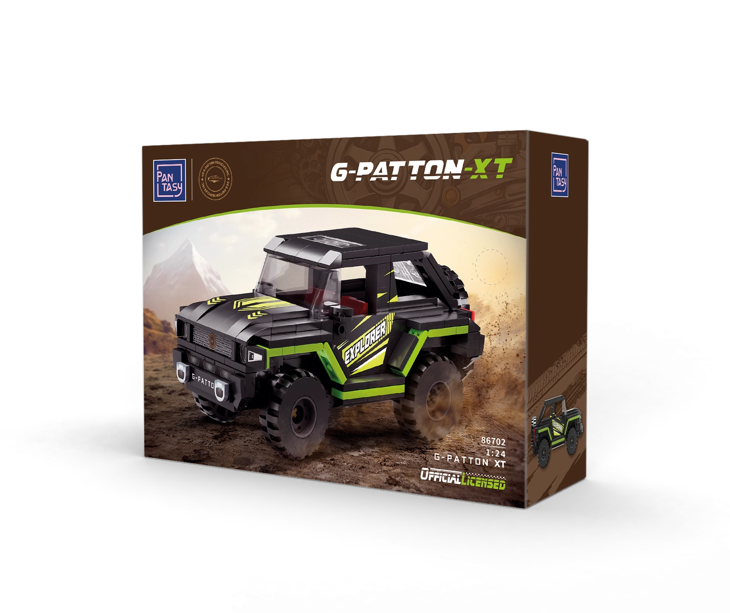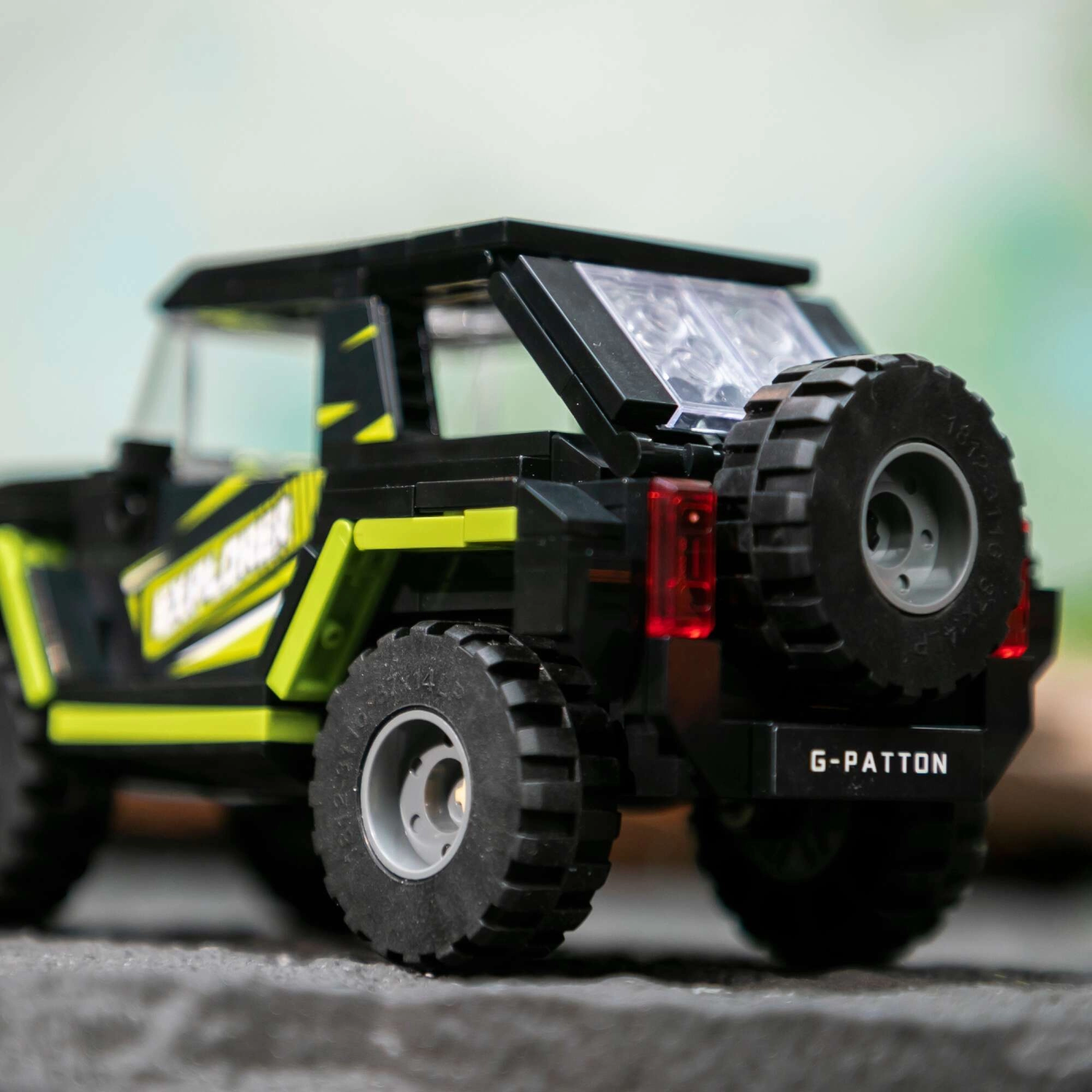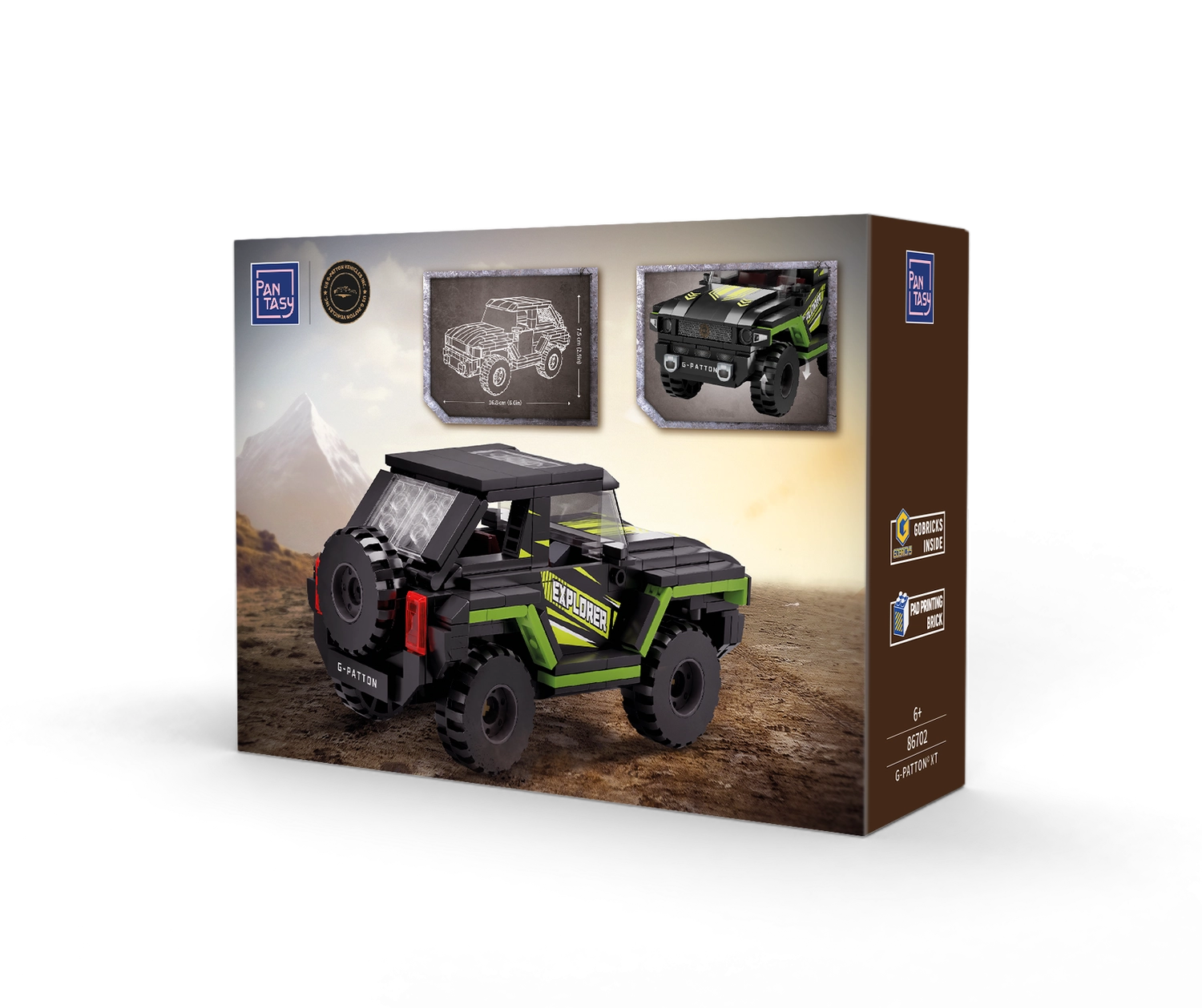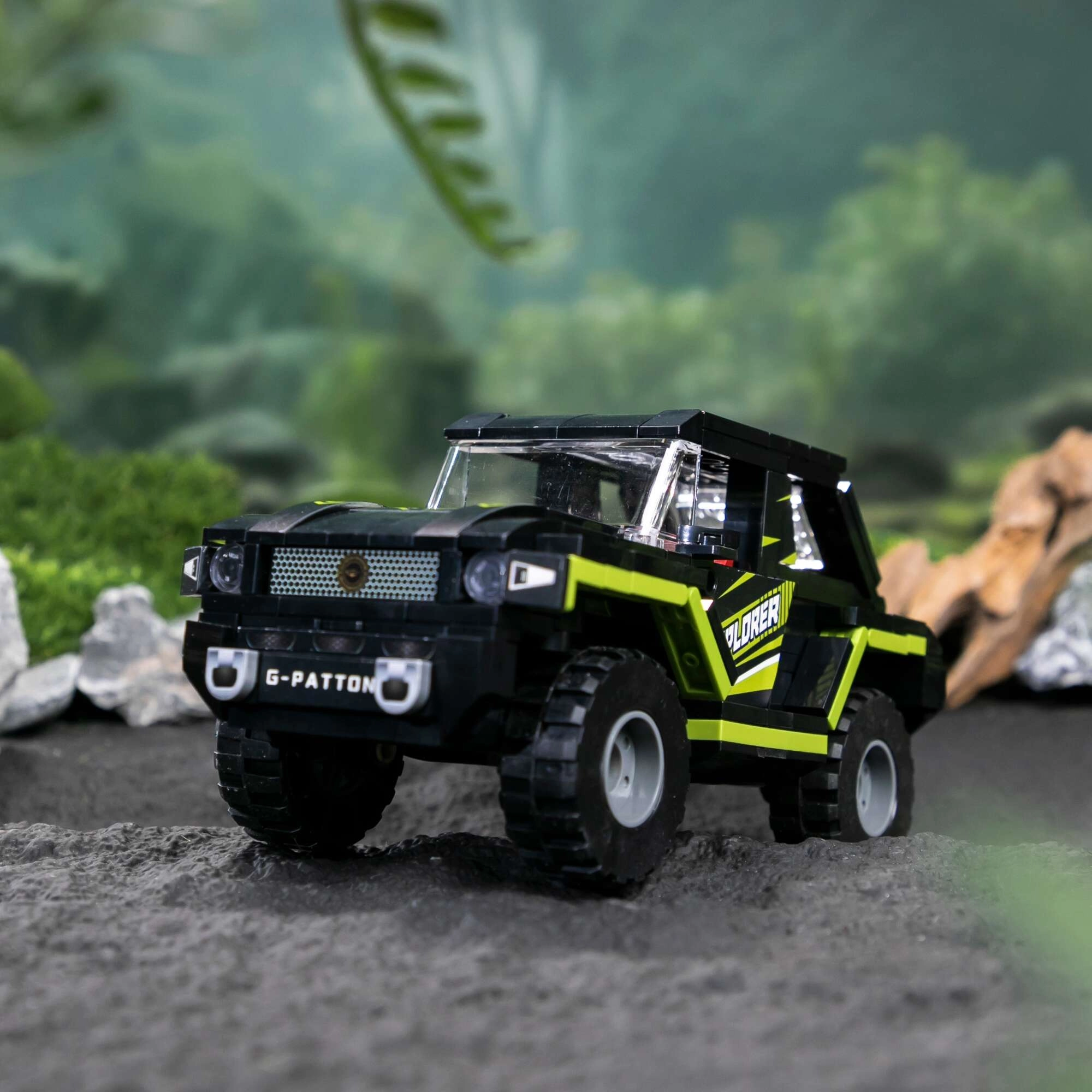 Dieses stylische Offroad-Modell in Schwarz-Limette begeistert mit realistischen Details: wuchtigen Reifen, klaren „Fenstern“, Ersatzrad hinten und den Aufdrucken EXPLORER/G-PATTON. Dank passgenauer Teile aus ABS-Kunststoff ist der Bau angenehm und das Ergebnis stabil und langlebig.