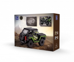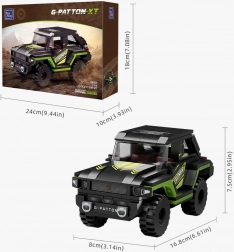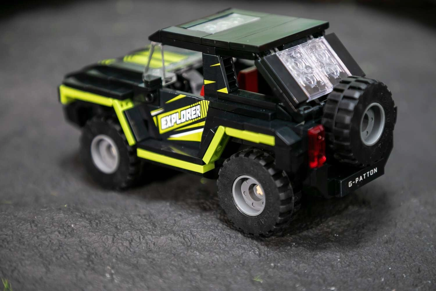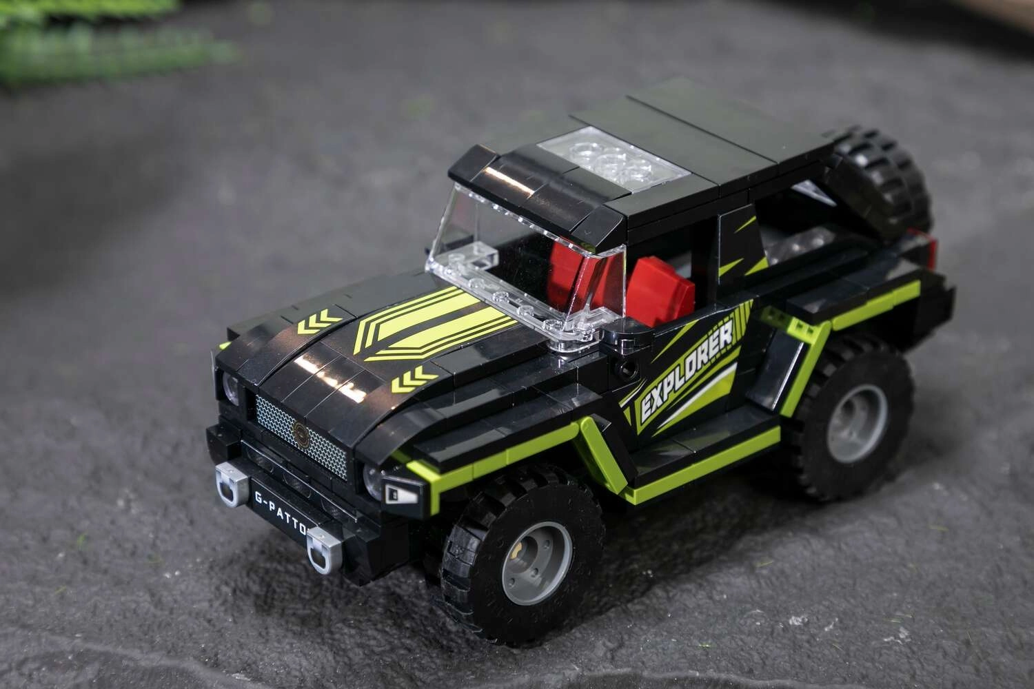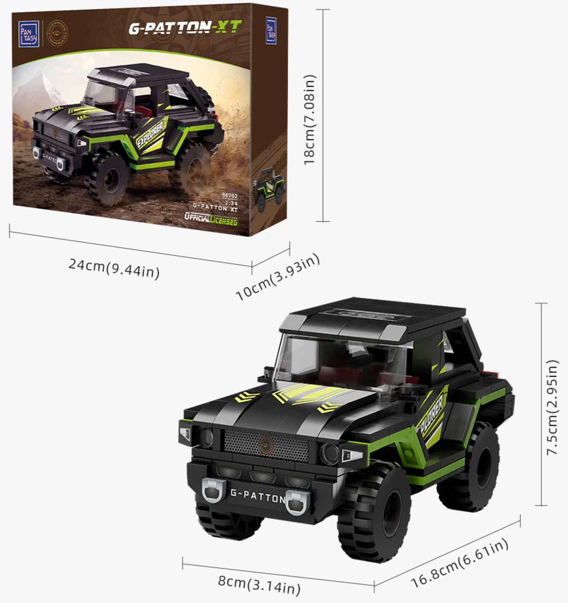Dieses stylische Offroad-Modell in Schwarz-Limette begeistert mit realistischen Details: wuchtigen Reifen, klaren „Fenstern“, Ersatzrad hinten und den Aufdrucken EXPLORER/G-PATTON. Dank passgenauer Teile aus ABS-Kunststoff ist der Bau angenehm und das Ergebnis stabil und langlebig.