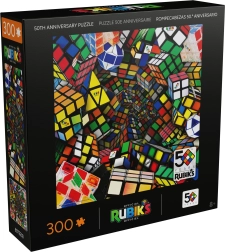 Tauchen Sie ein in die Welt der ikonischen Rätsel-Legende. Dieses Puzzle zum 50. Jubiläum des Rubik-Zauberwürfels bietet eine energiegeladene, teils psychedelische Komposition aus verschiedenen Formen und Varianten des Würfels im Lauf der Geschichte. Kräftige Farben und dynamische Muster begeistern sowohl Knobelfans als auch Designliebhaber.