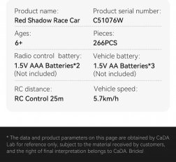 Das Bausteinset CaDA AZURE STORM vereint kreatives Bauen mit schneller RC-Fahrt. Nach dem Zusammenbau erhalten Sie einen detailreichen Rennwagen mit aerodynamischer Form, transparentem Cockpit und sportlichen Aufklebern – bereit für actionreiche Rennen zu Hause und draußen. Die Steuerung ist dank 2,4 GHz und Bluetooth intuitiv und stabil.