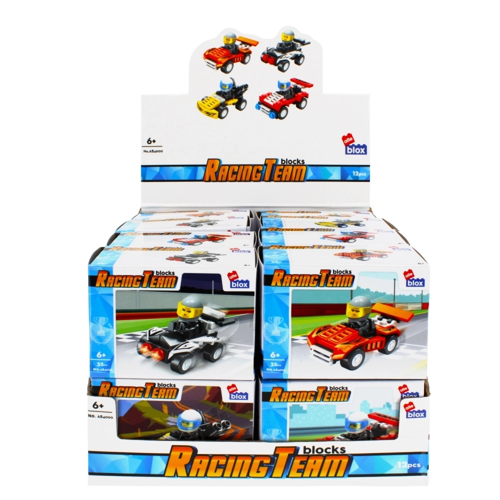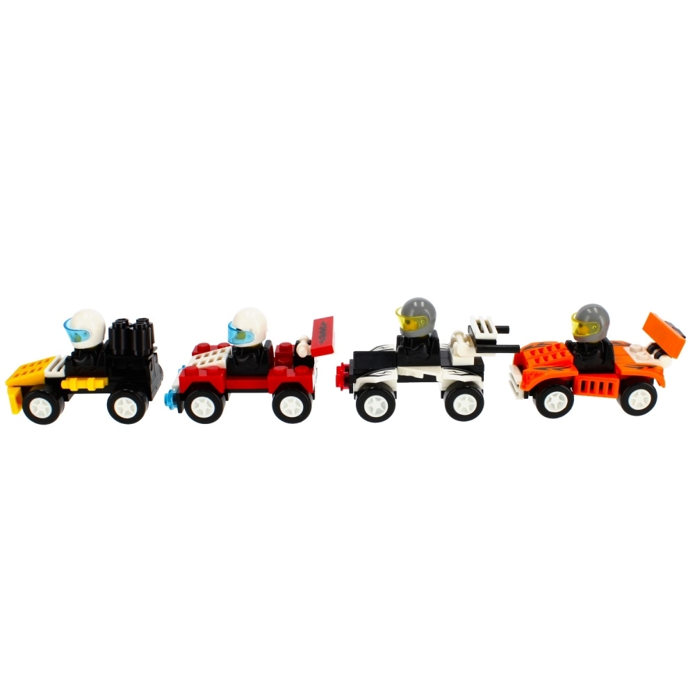 Zur Auswahl stehen 4 attraktive Designs (verschiedene Farben und Details), die sowohl im Regal als auch auf der heimischen Rennstrecke großartig aussehen. Die Autos sind mit gängigen Klemmbaustein-Systemen kompatibel, sodass du deine Ausstattung leicht erweitern oder dein eigenes Team zusammenstellen kannst.