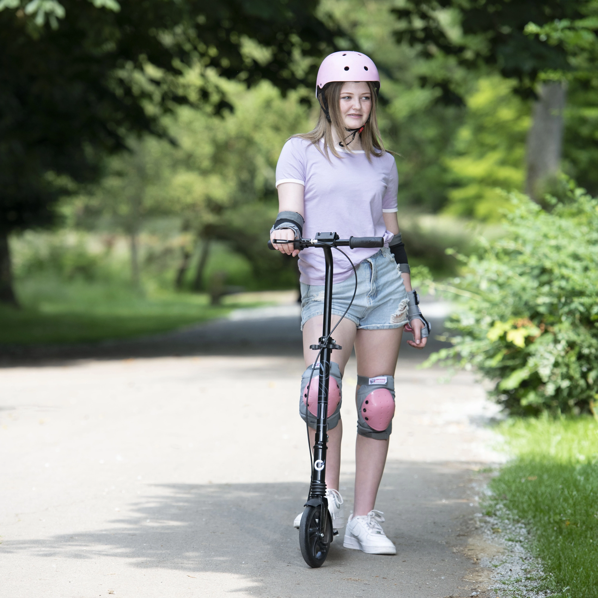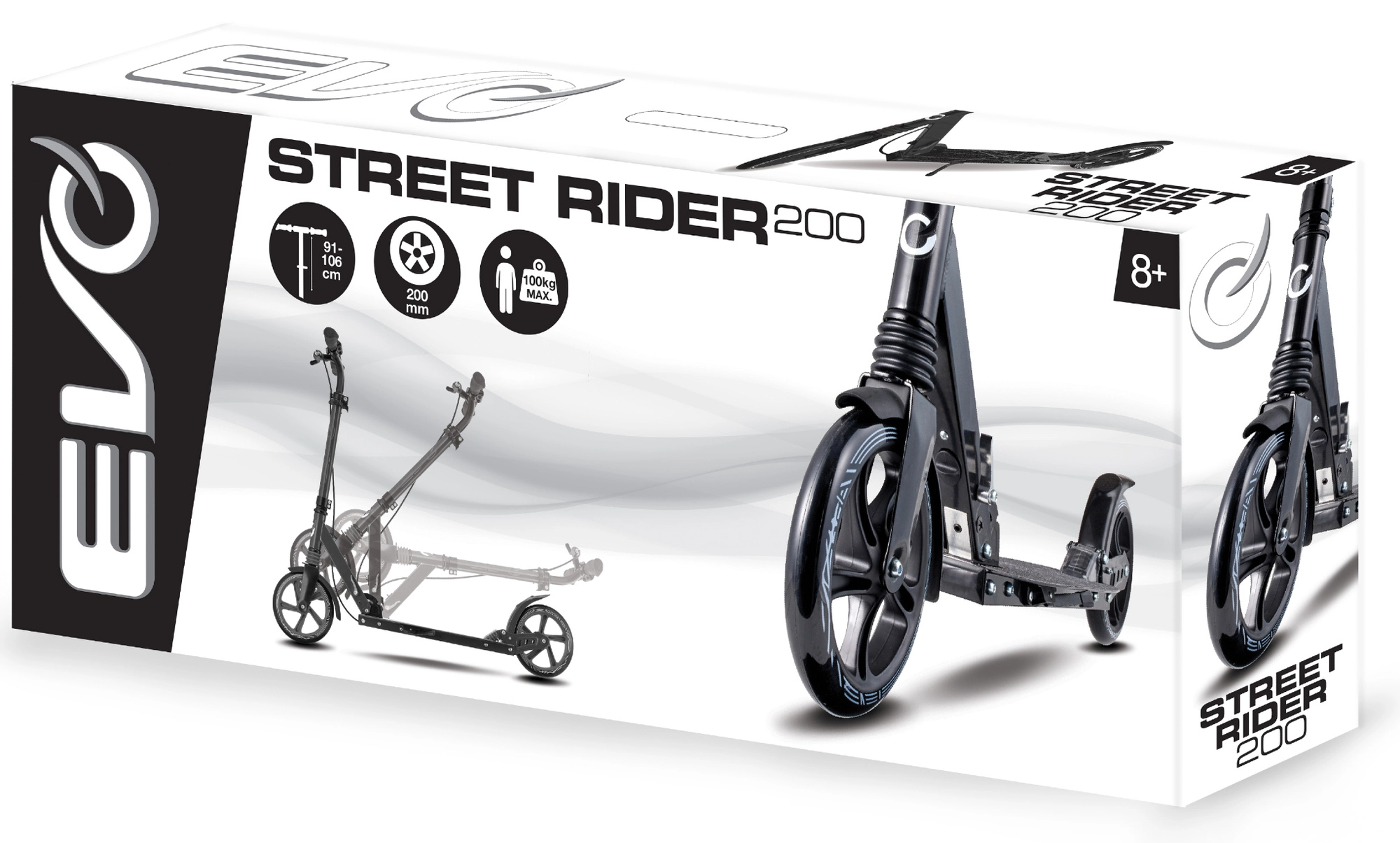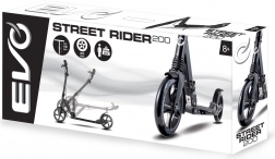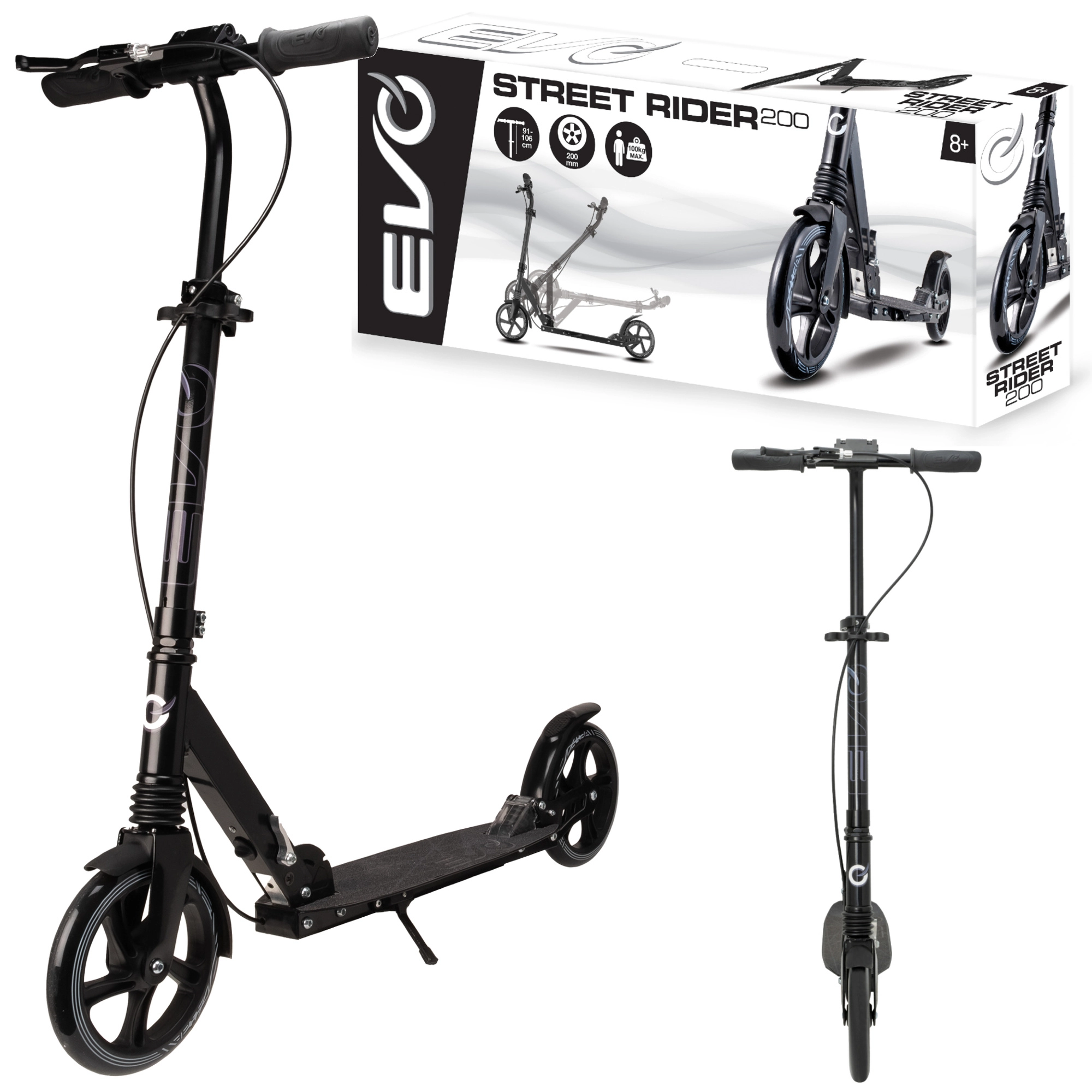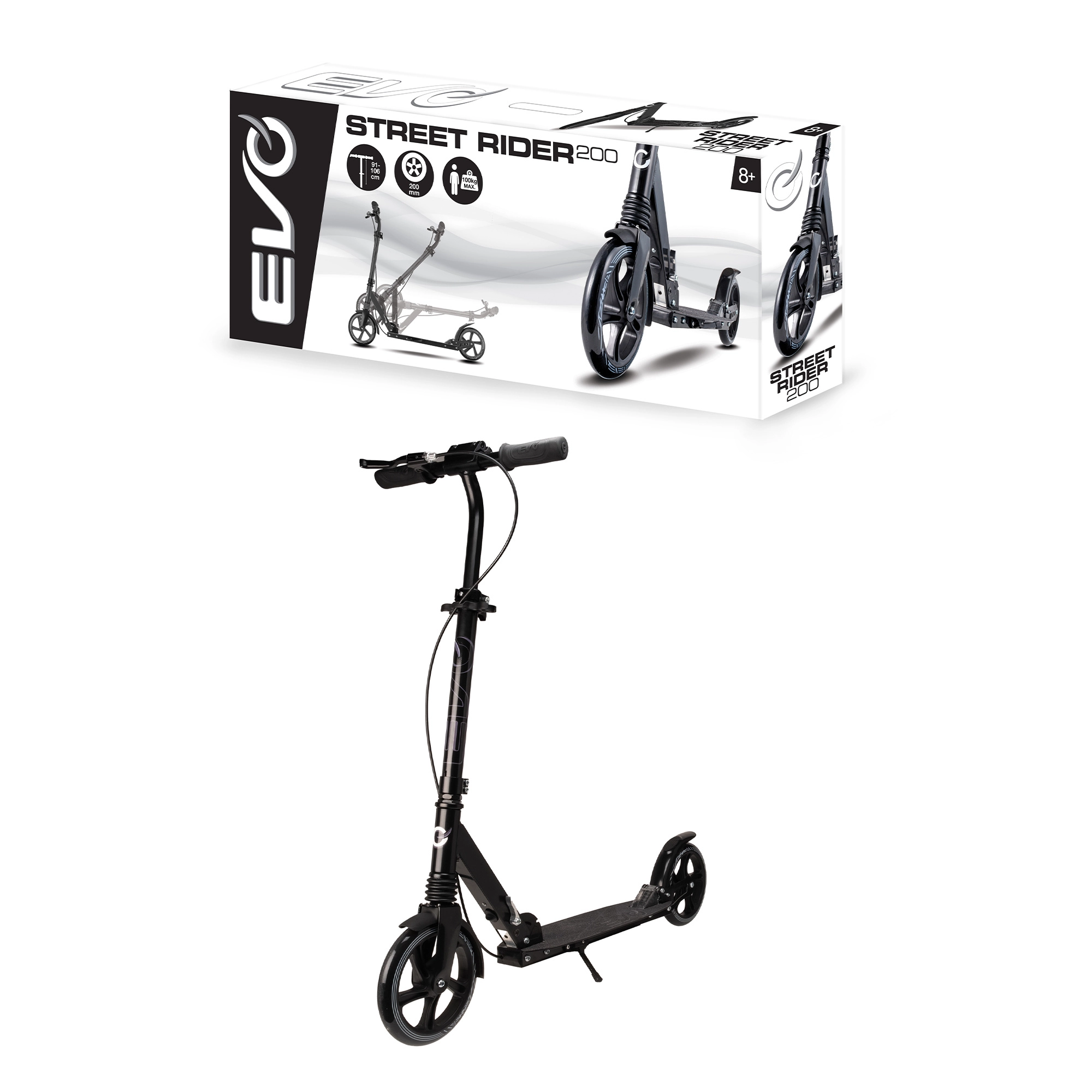 Der EVO Street Rider 200 ist die ideale Wahl für das Fahren in der Stadt und entspannte Ausflüge in der Freizeit. Dank der großen 200-mm-Räder mit ABEC-7-Lagern fährt er leicht an und läuft ruhig, die Federung nimmt Unebenheiten, und die klappbare Konstruktion sorgt für einfaches Tragen und Verstauen. Die einstellbare Lenkerhöhe passt sich der Körpergröße des Fahrers an – so wächst der Roller mit Kind und Teenager mit.