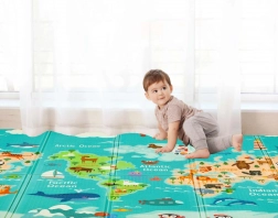 Das Design fördert spielerisches Lernen: Die Weltkarte mit Ozeanen, Kontinenten und Tieren weckt kindliche Neugier auf Geografie, während Straßen mit Autos und Gebäuden Fantasie und kreatives Spielen anregen. Die Matte ist wasserabweisend und hygienisch – einfach mit einem feuchten Tuch abwischen, sie bindet keinen Staub und ist auch für Allergiker geeignet.