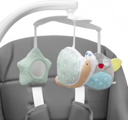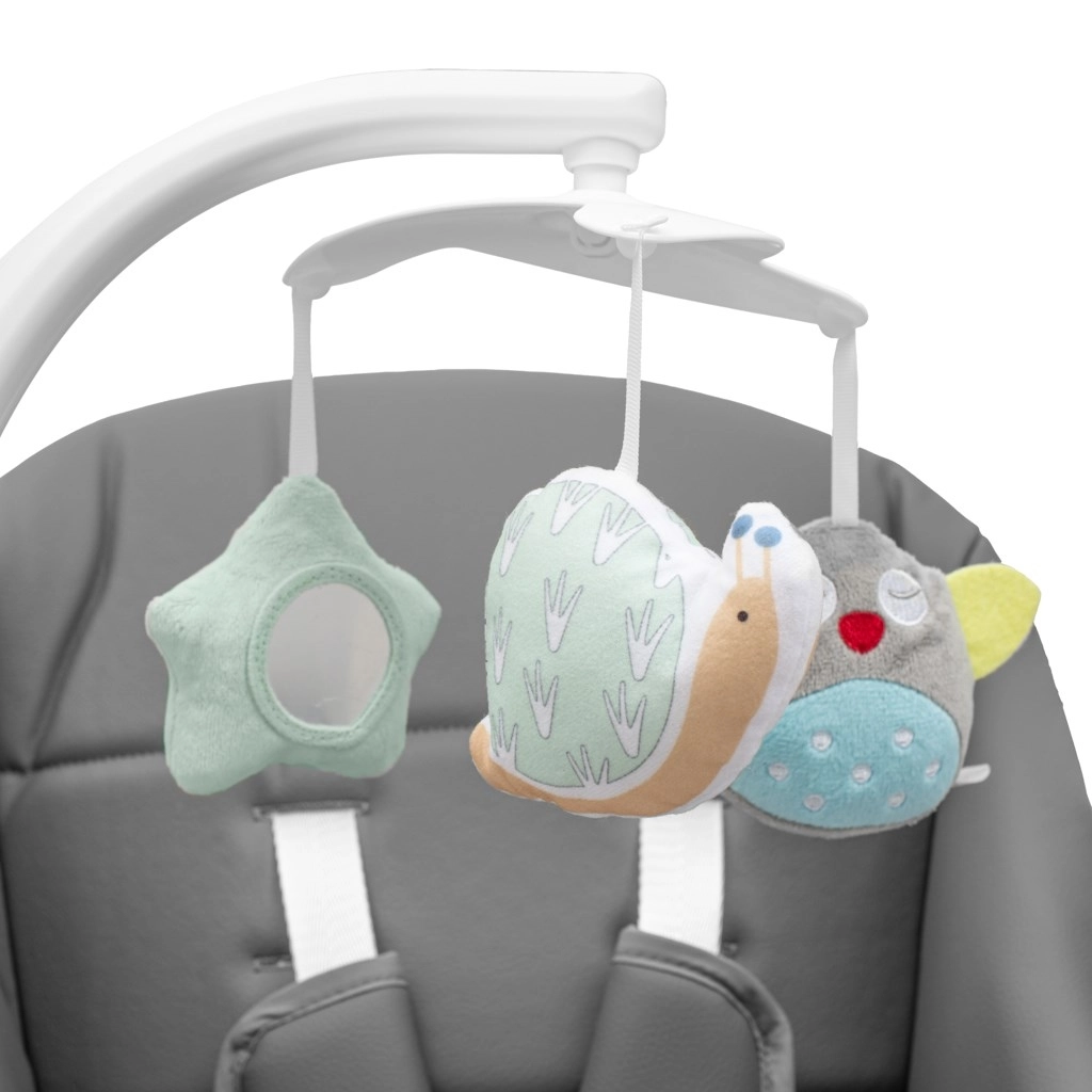 Leicht abwischbare Polster, 4 Neigungspositionen der Rückenlehne, ein geräumiger Sitz und die robuste A-Rahmen-Konstruktion gewährleisten täglich Komfort und Sicherheit. Integrierte Melodien, verschiedene Schaukelgeschwindigkeiten und hängende Spielzeuge fördern Entspannung und Entwicklung des Kindes.