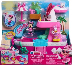 Enthalten sind die Figuren MINNIE, DAISY und der niedliche Hund Snowpuff, die ihr in die Sessel setzen, auf die Schaukel setzen oder die Rutsche hinunterrutschen lassen könnt. Lichter und Geräusche sowie die funkelnde „Diskokugel“ verleihen jeder Szene eine magische Atmosphäre, während kaltes Wasser im Pool den magischen Farbwechsel auslöst.