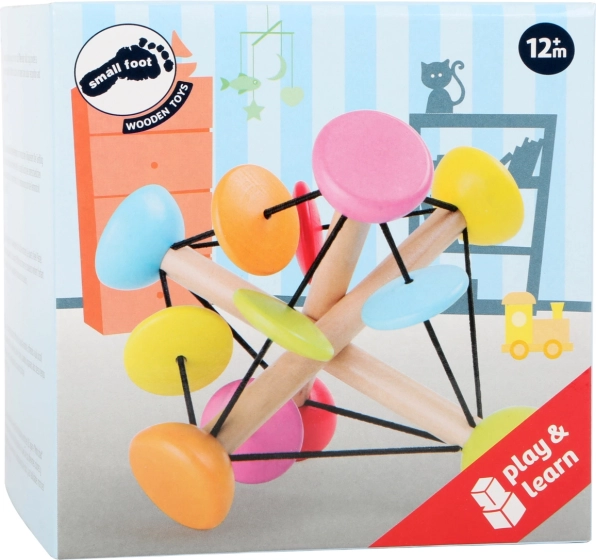 Dieses durchdachte Motorikspielzeug von small foot ist für kleine Kinderhände konzipiert. Drei Holzstäbe, die durch elastische Gummibänder verbunden sind, bilden eine stabile, aber nachgiebige Konstruktion, die Kinder frei formen können. Die bunten Perlen geben beim Verschieben und Drehen angenehme Geräusche von sich und unterstützen so die sensorische Entwicklung und Konzentration.