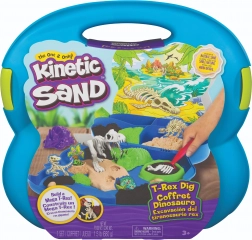 Dieses kreative Set mit kinetischem Sand bietet Kindern ein realistisches Erlebnis von T‑Rex-Fossilien-Ausgrabungen. Dank der unterteilten Tablett-Wanne haben Kinder alles übersichtlich zur Hand, können Sandfarben mischen, die Landschaft formen und das Dino-Skelett als Abdruck oder Form zusammensetzen. Der Sand fühlt sich angenehm an, hält die Form und hinterlässt keine Unordnung.