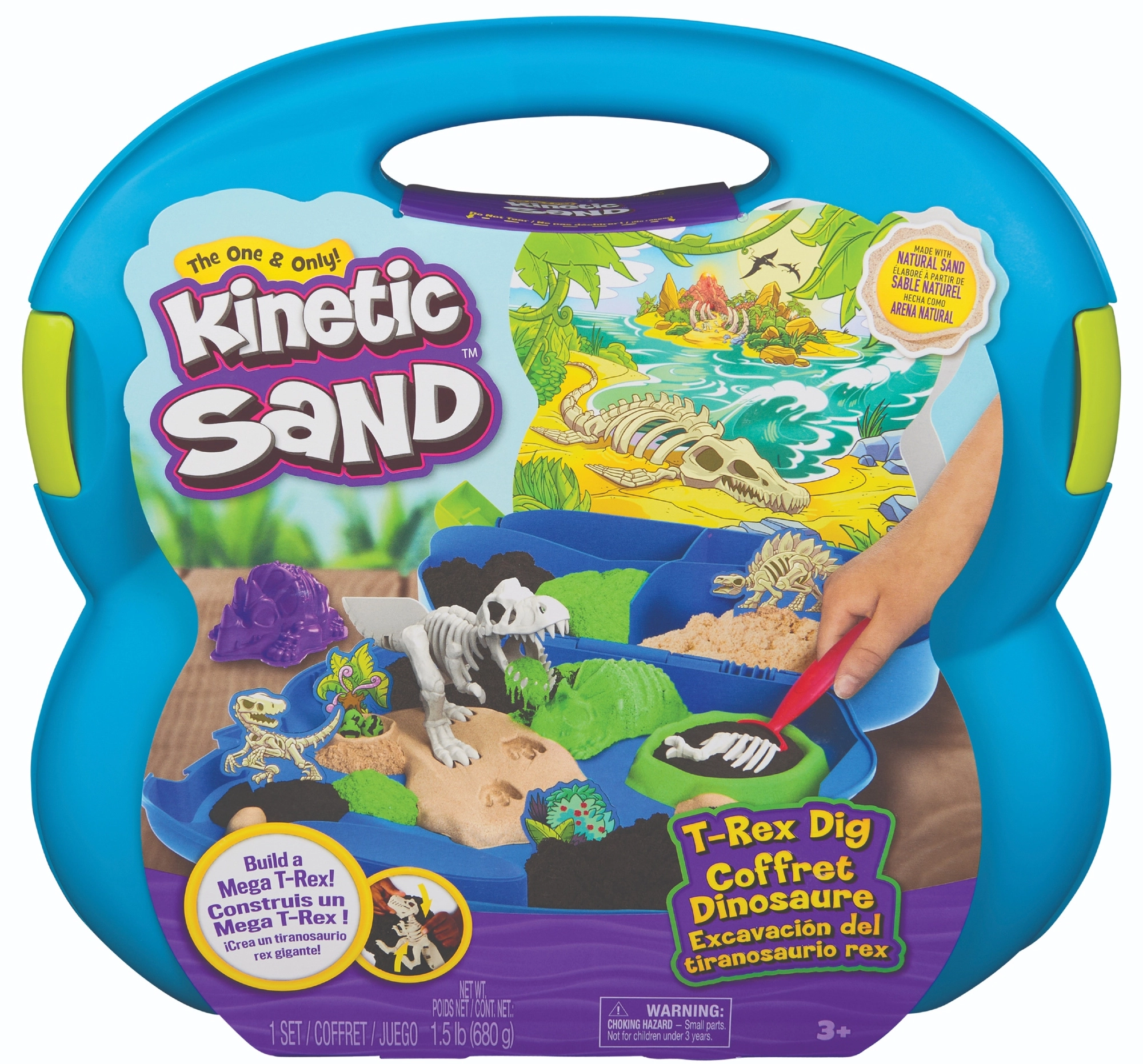 Das Set fördert Feinmotorik, Vorstellungskraft und sensorische Wahrnehmung. Im Set enthalten sind umfangreiches Zubehör: ein Kunststoffskelett, Formen, ein Grabwerkzeug, Kartonfiguren von Pflanzen und Dinosauriern sowie eine farbige Kulisse zum Aufbau einer Mini-Dinosaurierwelt.