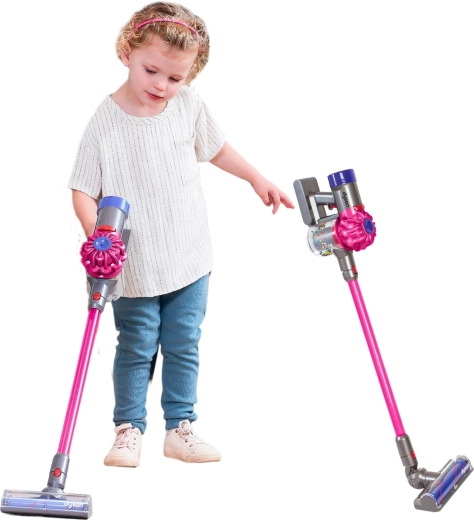 Schenken Sie Kindern die Freude am Nachahmen der Erwachsenen mit dem ikonischen Kinderstaubsauger CASDON DYSON. Dieser leichte und sichere Stielstaubsauger in Rosa-Grau bietet einen authentischen Look, realistische Geräusche und eine echte, sanfte Saugfunktion für kleine, leichte Partikel wie Papierkonfetti oder Styroporkügelchen.