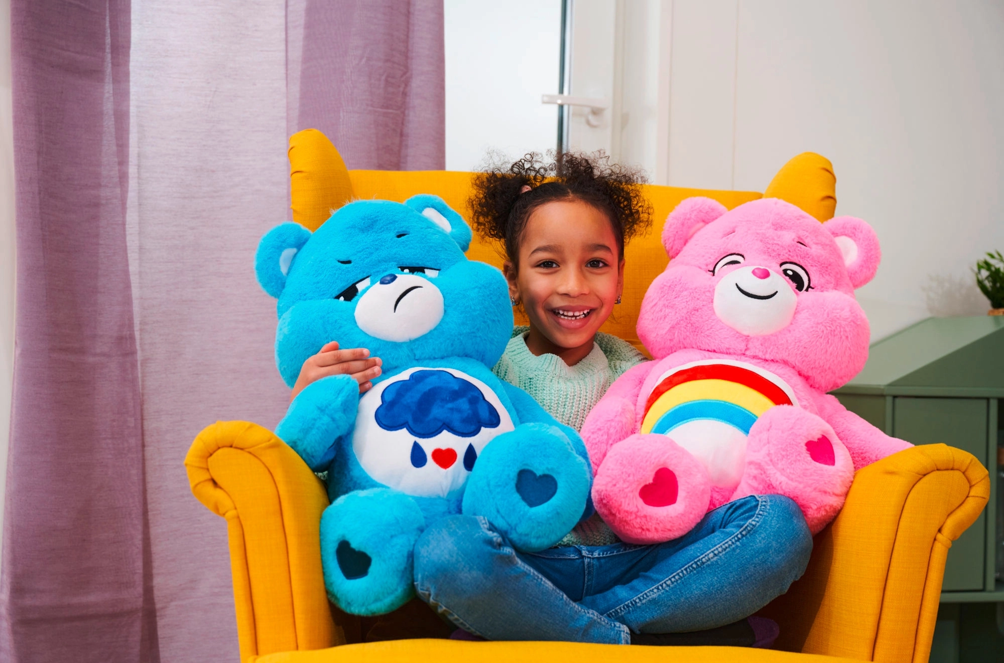 Die kuschelweiche Oberfläche und das charakteristische Symbol der Regenwolke mit Herz erfreuen alle CARE BEARS Fans.