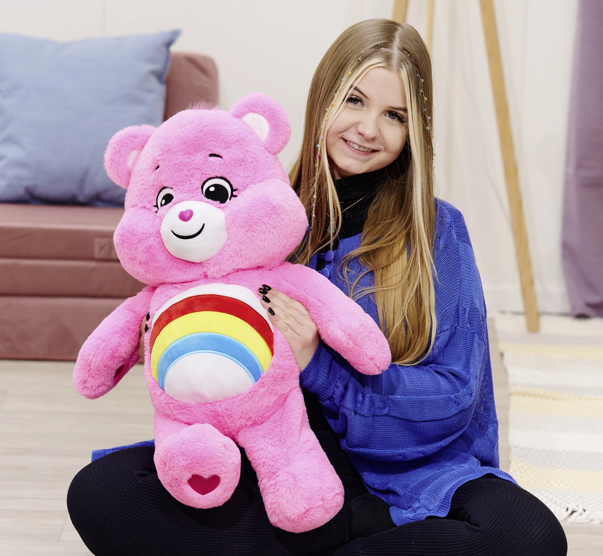 Begrüßen Sie im Kinderzimmer den fröhlichen Bären Cheer Bear aus der Serie CARE BEARS. Sein ikonischer Regenbogen auf dem Bauch symbolisiert Freude und gute Laune, die jeden Tag verschönert. Das sanfte, weiche Material lädt zum Kuscheln ein und spendet Kindern Trost beim Ausruhen.