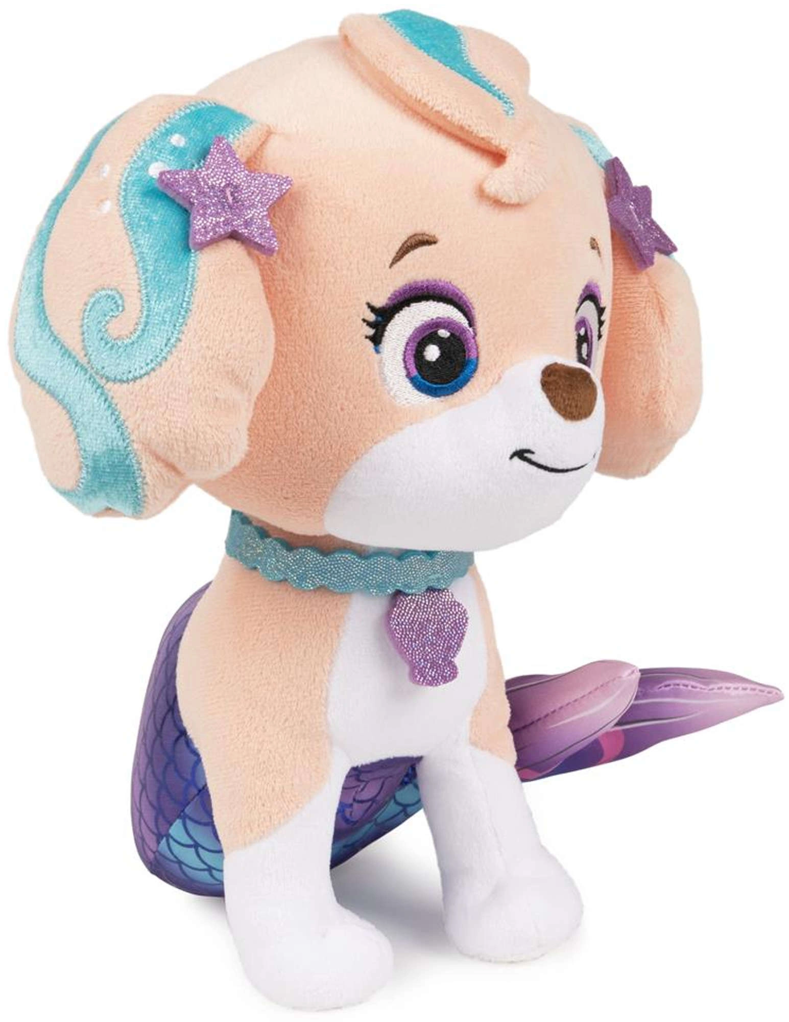 Der Plüsch-Coral stellt eine niedliche Mischung aus Hündchen und Meerjungfrau dar, inspiriert von der Serie PAW Patrol. Sie hat einen superweichen Körper, sichere gestickte Augen und auffällige Regenbogendetails, die sofort ins Auge fallen. Dank der kompakten Höhe von 23 cm passt sie gut in Kinderhände und wird zum treuen Begleiter zu Hause und unterwegs.